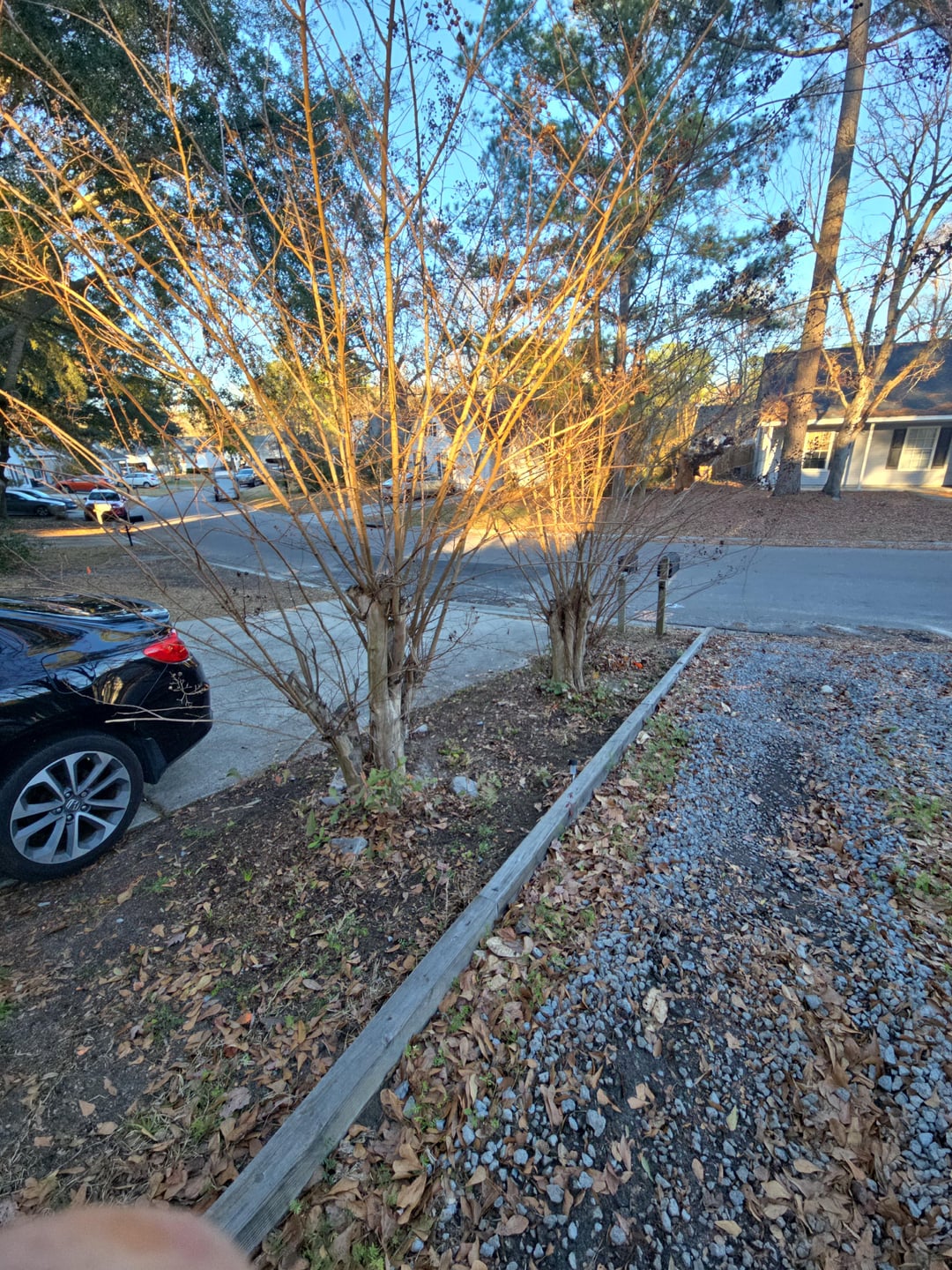 The previous owner planted a variety that is too large for this spot. The butchering is causing all sorts of unwanted new growth. I’d remove them completely and replace them with something smaller.