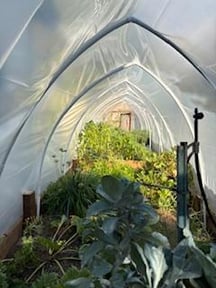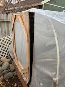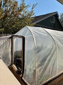 The ordinary hoop house wasn't good enough to provide heavy snow run off. I put in 45 degree angled top pieces and made it cathedral style. Working pretty good. A fan at each end helps oin those hot desert summer days. Unfortunately I can't find any 45 degree angled 4 way pvc to reinforce the ribs perhaps I'll add 4 ways half way up the rib sides.