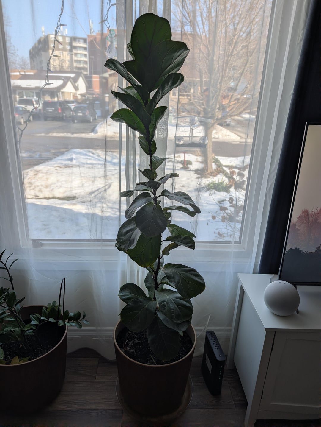 Hi guys, I would love to hear your opinions on how to prune my fiddle leaf fig to encourage branching instead of just this one long, straight stem. I've already cut it once, but it keeps growing straight up,thank you!