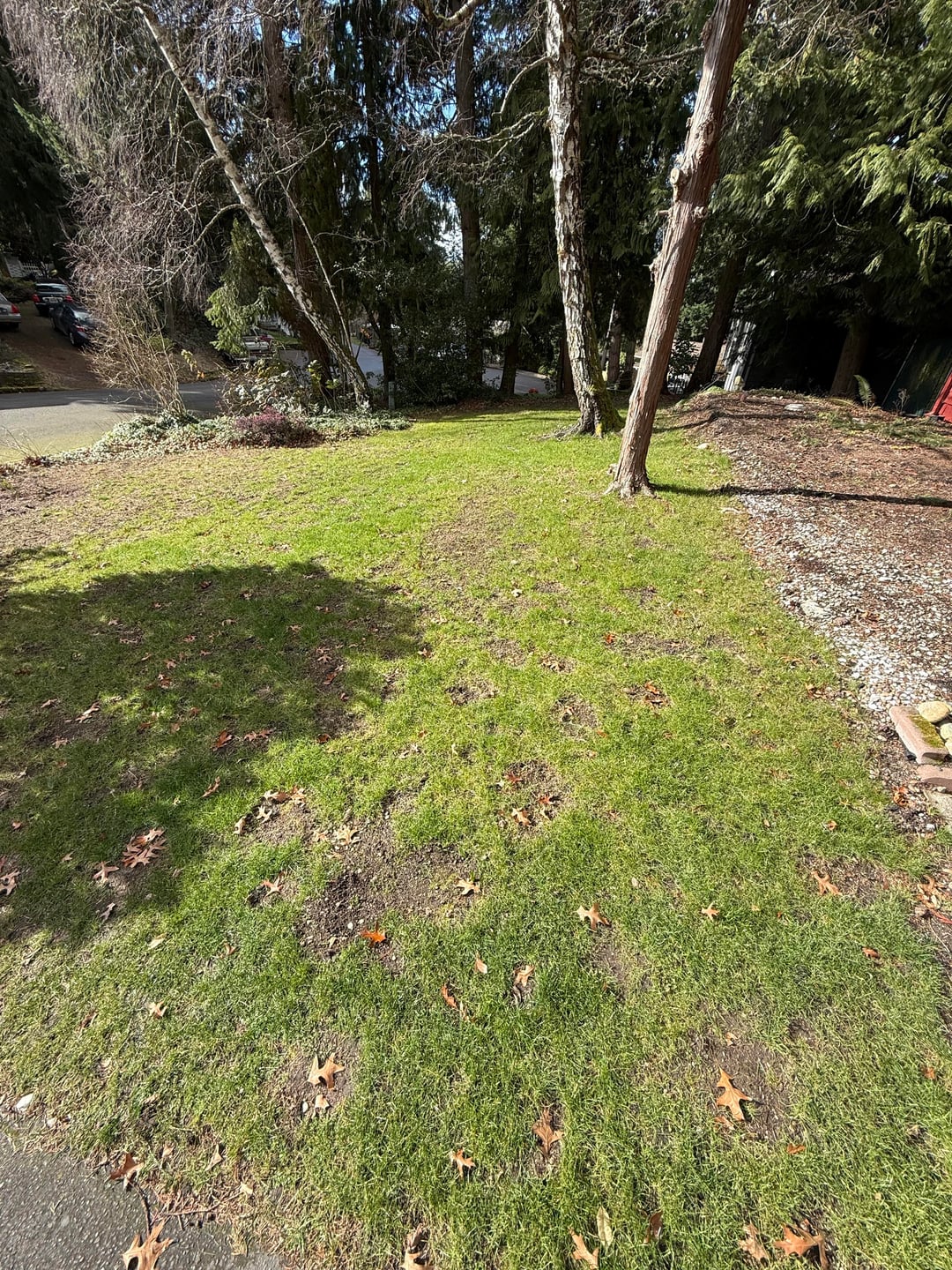 Condition: I de-thatched and aerated my lawn last fall, and now it's really patchy, but the grass that is alive seems generally healthy. There are some big trees in the yard that cast some shade, but it is south-facing and gets decent sun in most areas. There are some weeds, but I'm doing my best to remove them all manually (no pre-emergent or other herbicide in use currently)