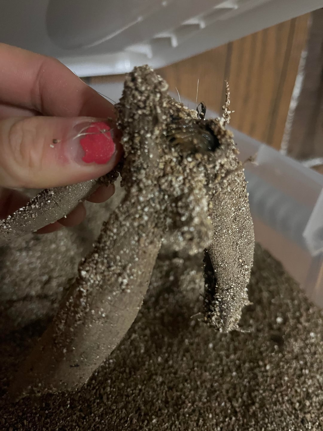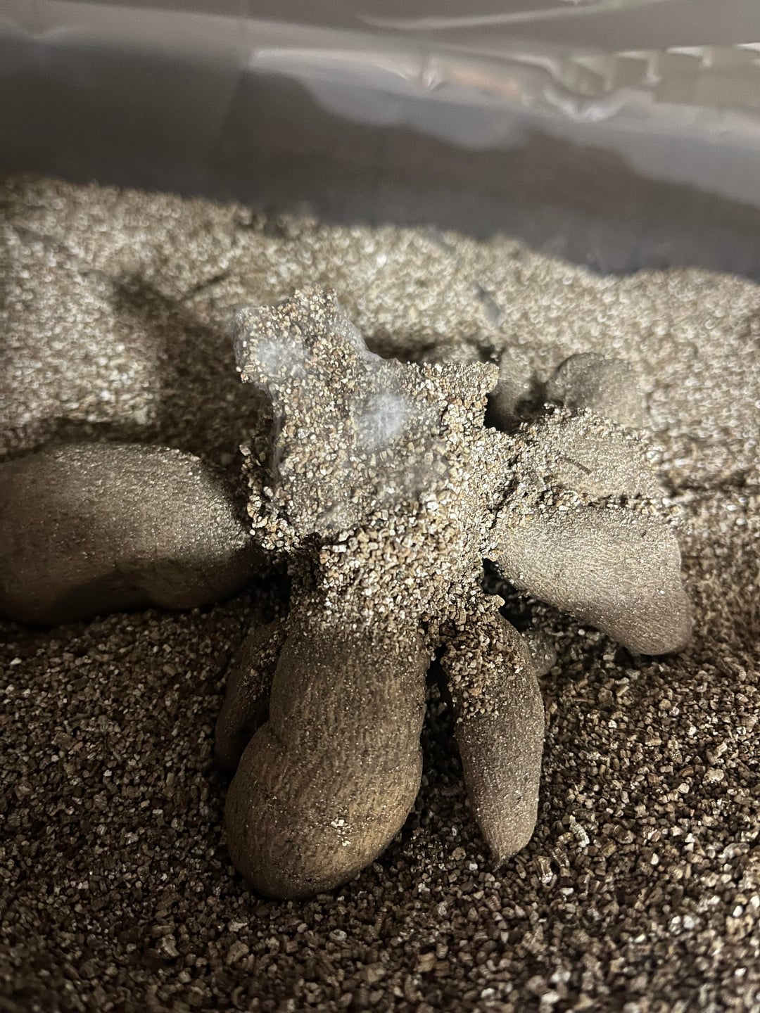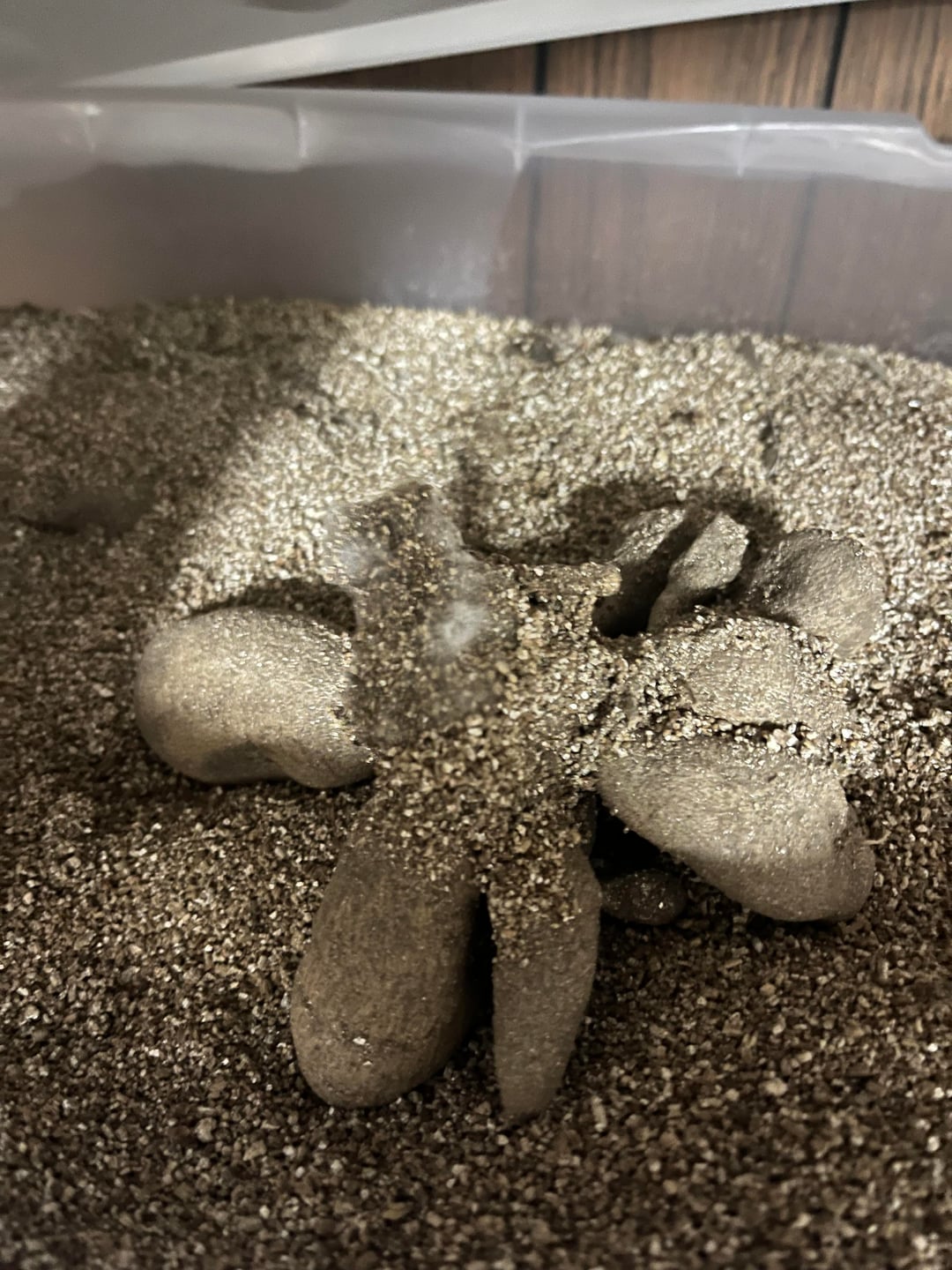 Images 1-3: white fuzzy on top (was not covered w vermiculite). is this mold? the buried tuber parts are solid and healthy.