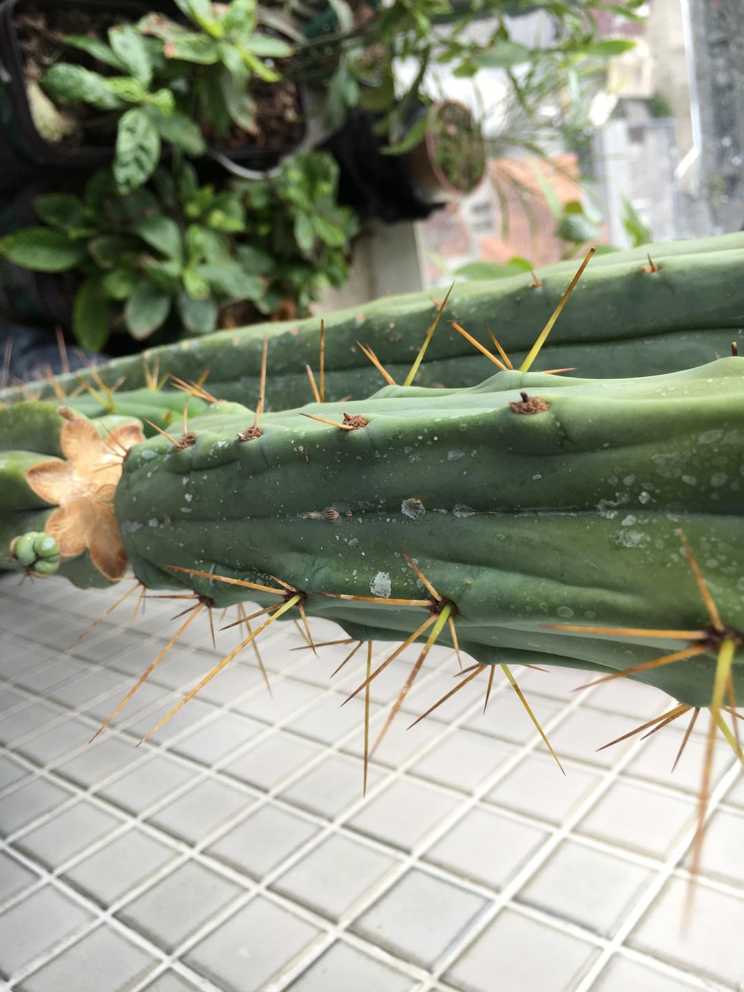 This cam from Home Depot and was labeled cereus areiquipas(sp). It has since plumped up, grown two pups and is about 24″ tall. But it is now showing the same lines as yours. None of my other bridgesii are doing this. I will repot it in a few weeks and check out the roots. Odd.