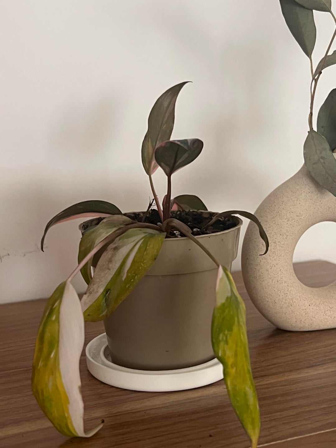 So for reference, first photo is the way it looks now. There’s two little plants in the same pot: one looks fine (the one in the back), green, pink, and perky. The other one is droopy, yellow, and very soft to the touch. I haven’t repotted it yet, only sprayed miiiiinimal diluted neem oil and watered it (after instructions from the seller who told me I should do it two days after the purchase). Now it’s chaos. It’s receiving good light, environment is good, and still I’m not sure what could be going on. Maybe I overwatered? 😥