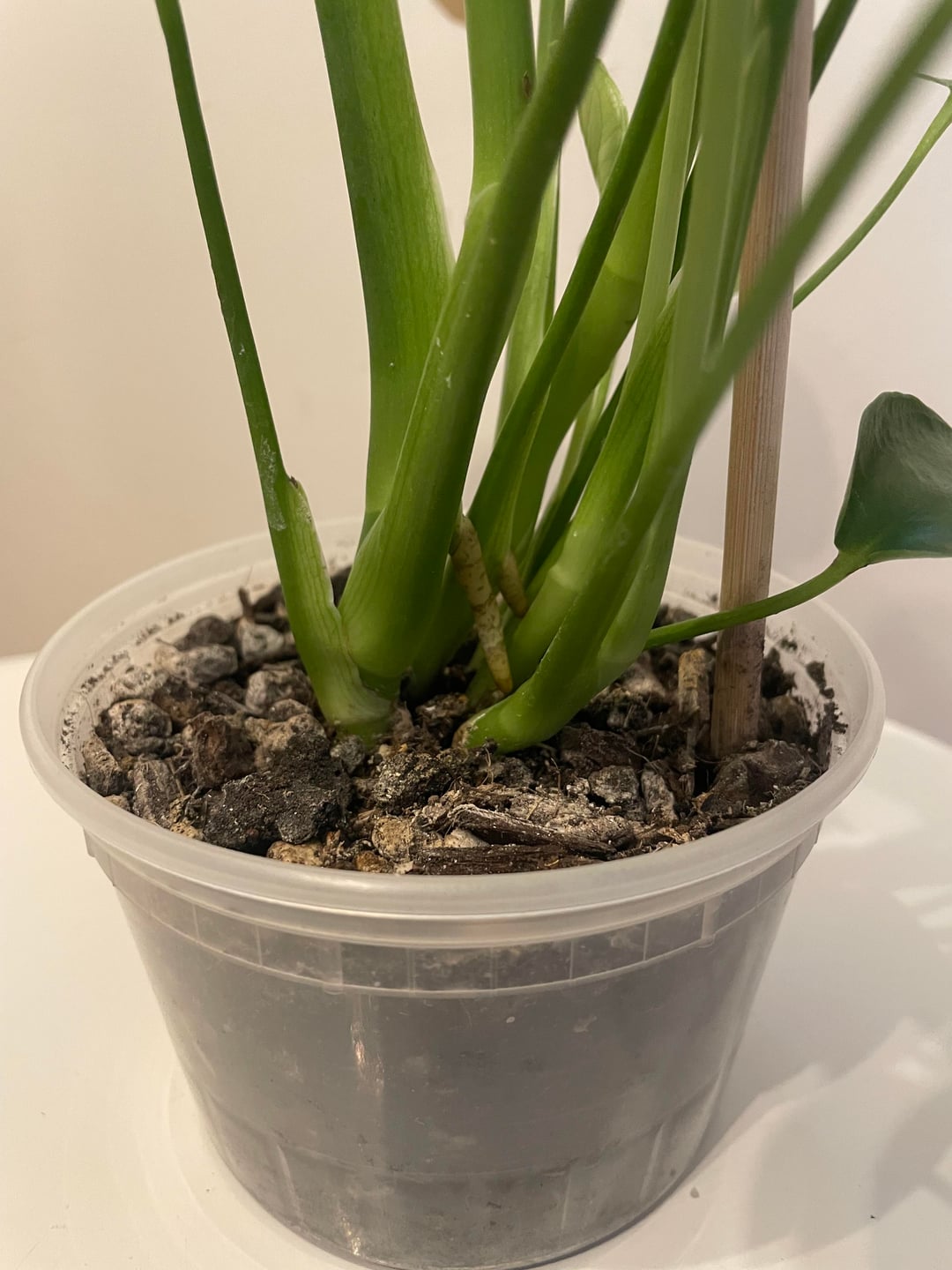 i have like 4 monstera plants in one pot. should I separate them so I can stake on poles or keep them together? yes the plant is in a to go container lol it has drainage