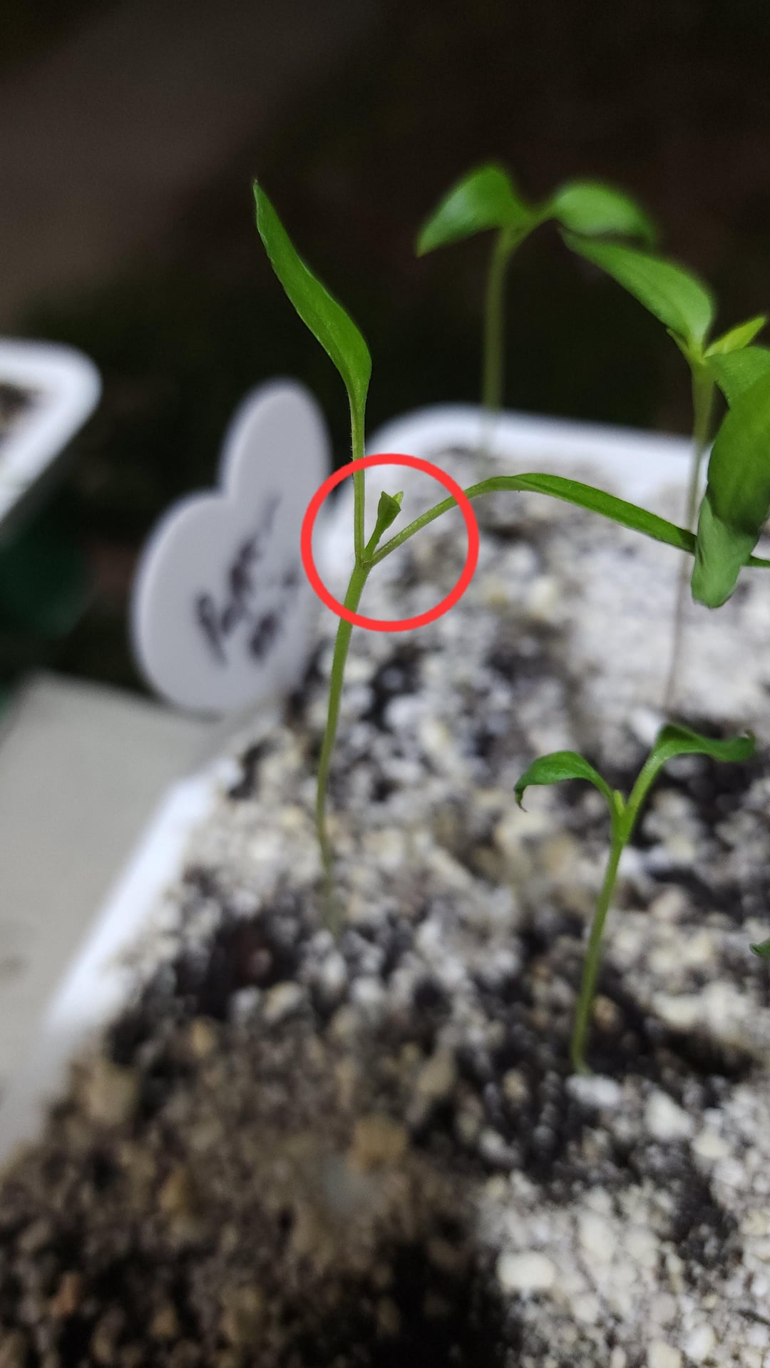 Those are the first true leaves. The first leaves that come are seedling leaves, which will usually turn and eventually drop off. It’s usually 2 sets of true leaves you want until you start fertilizing or repot. So another set from what you see there.