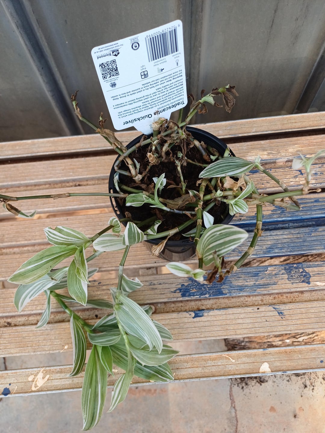 I picked this up off the discount rack and I was thinking of cutting off the long pieces for propagation and repotting what's left into a hanging basket. It seems healthy enough, there are new shoots coming up.