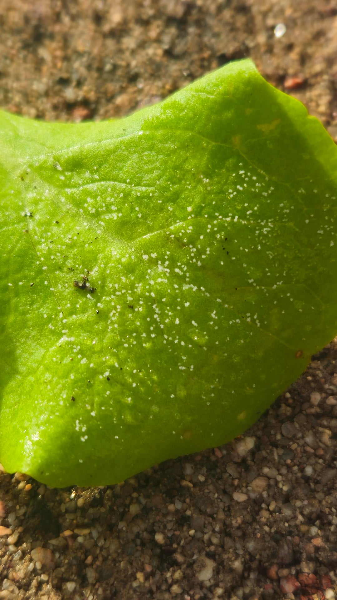 Had a rainy week and noticed these when checking on my small lettuces. Been manually keeping the aphids and psyllids at bay but I took out the 5-8 leaves I noticed with this white stuff.