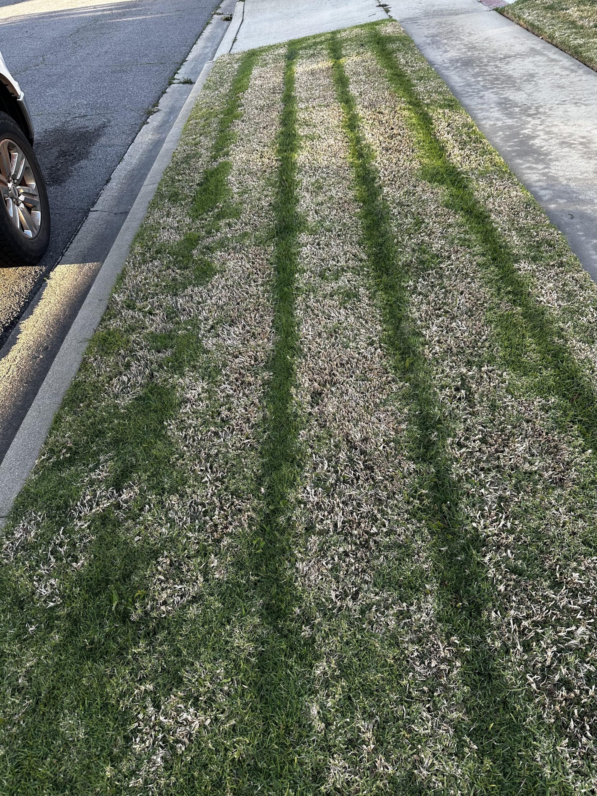 Any idea what could cause this? In zone 9b in San Bernardino County, CA. No changes in watering and haven’t fertilized maybe ever. It seems to be mostly mowed weeds with some grass in it.