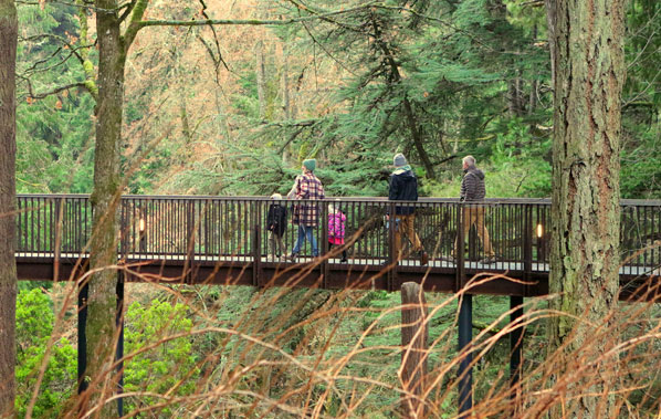 December 2025: Visitors take a stroll on the Aerial Tree Walk during the Winter Solstice event.