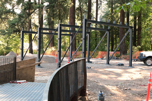 July 2020:An end of the partially completed Aerial Tree Walk is in the foreground, and the steel framework for The Arbor is in the background as the the Garden’s Phase 2 Development Project nears completion.