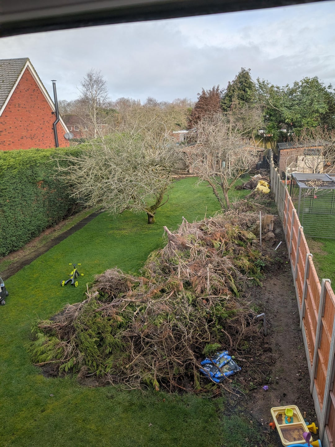 The remaining border trees are also Leylandii and will come out for (possibly) yew. Need something there due to the overlooking house on the left.