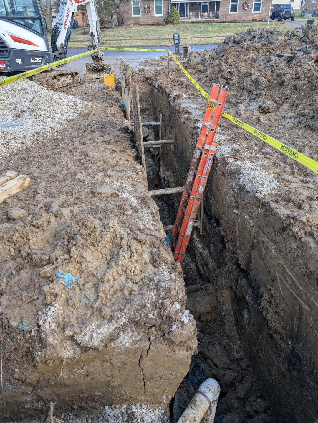 If a 14 foot deep trench was not compacted when back filled it will be sinking for the next 10 years.