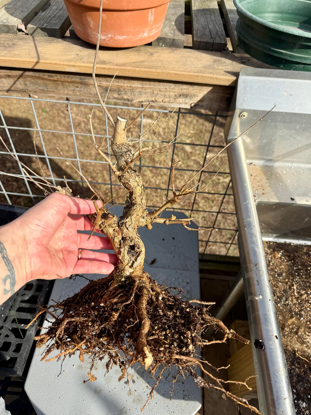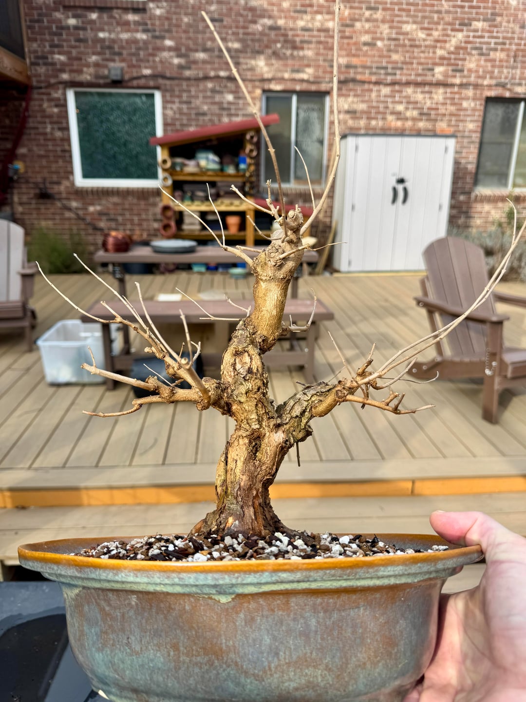 Fresh from the ground growing area, it has some rebalancing design to do in that heavy branch but these feature fun bark and fantastic leaves. I assume the reason they aren't common in bonsai is because they aren't very long lived, maybe 30-50yrs. That's never been a huge barrier for me as I'm unlikely to be around much longer than that.
