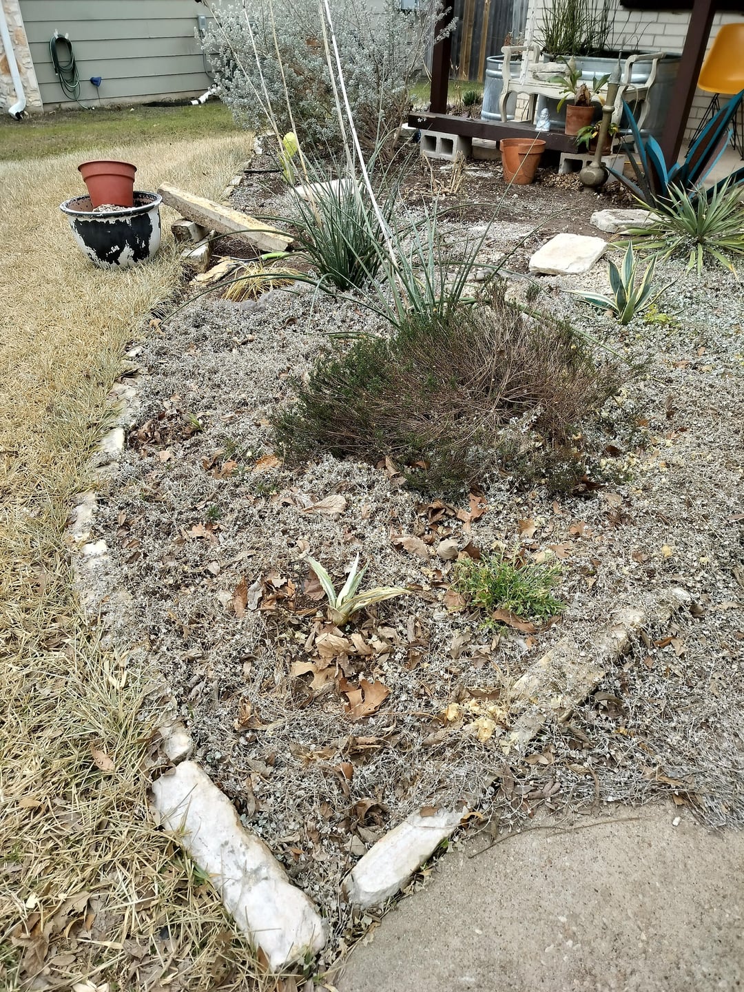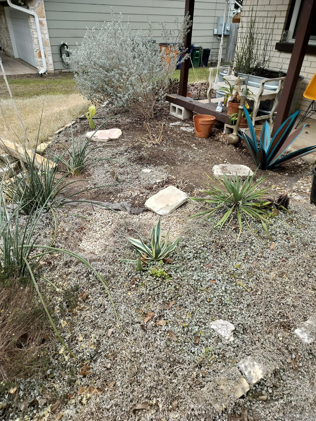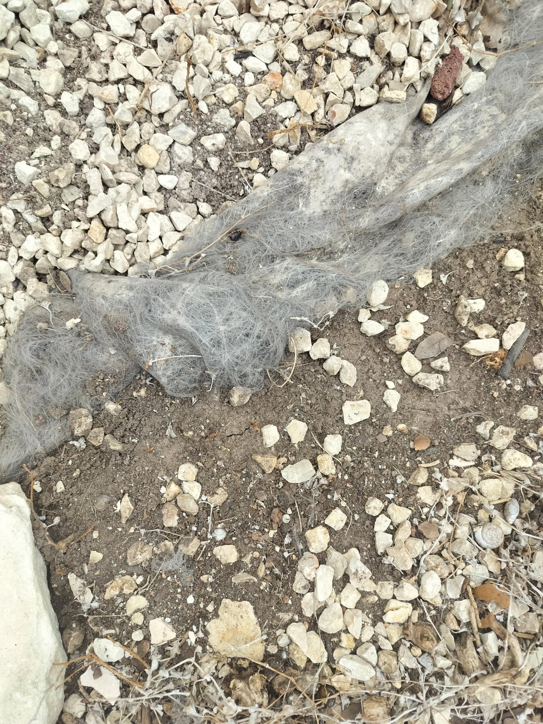 My partner and I made the terrible mistake of laying down weed block and plopping rocks on top of it a few years ago. Now the soil below the rocks is dead and the rocks are covered in pony foot and weeds. I’ve been very slowly excavating the rocks over the last year and I have A Plan for this space, but I need a little motivation to keep going, so I am revealing this mess to y’all to keep the focus. These photos were taken a couple of weeks ago when it was still very cold.