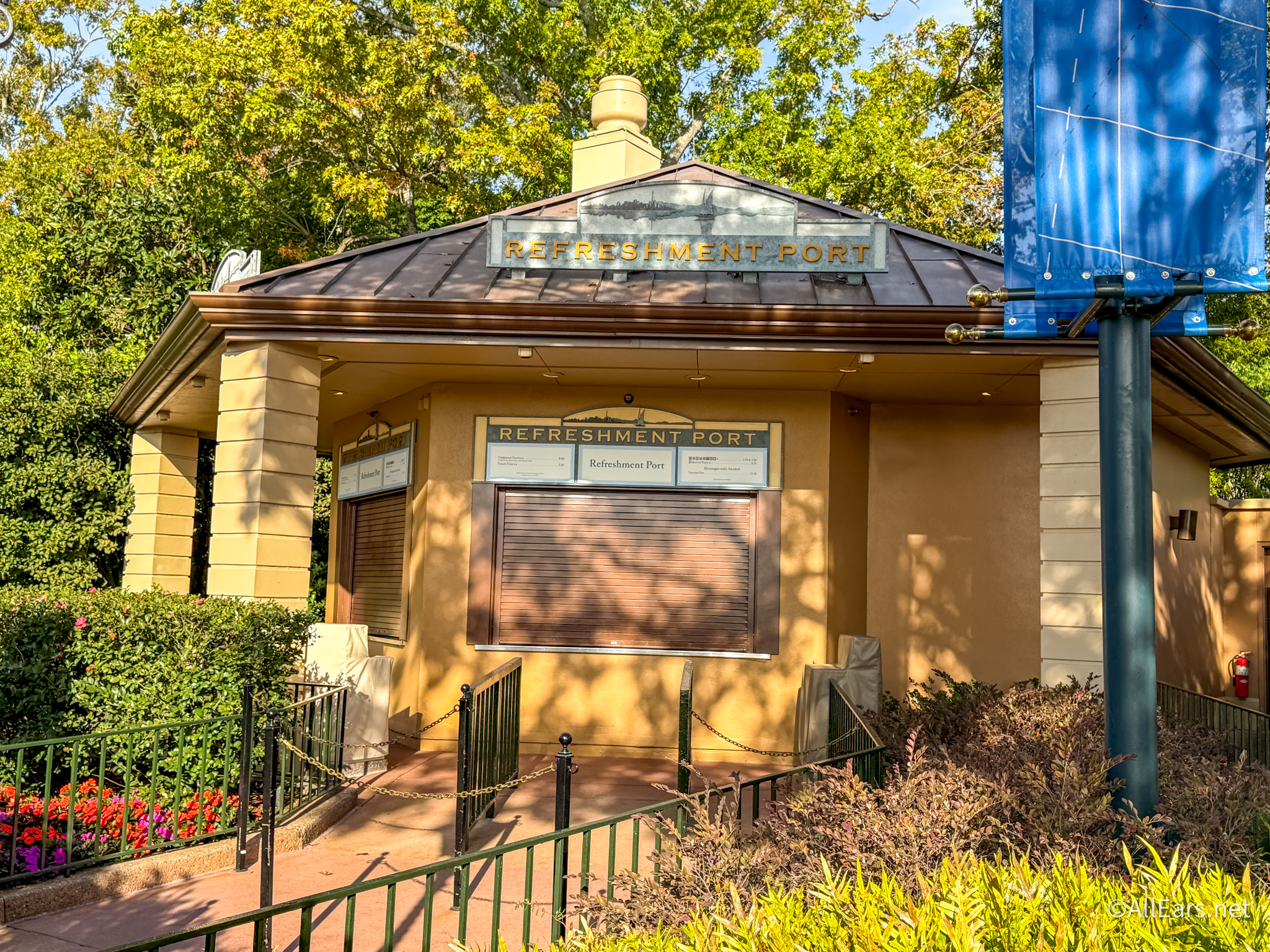 On January 12th, the Refreshment Port located in World Showcase closed for refurbishment. It’s a quick service kiosk located beside the Canada pavilion. We weren’t sure what specifically the refurb was for or how long the refurb would take.