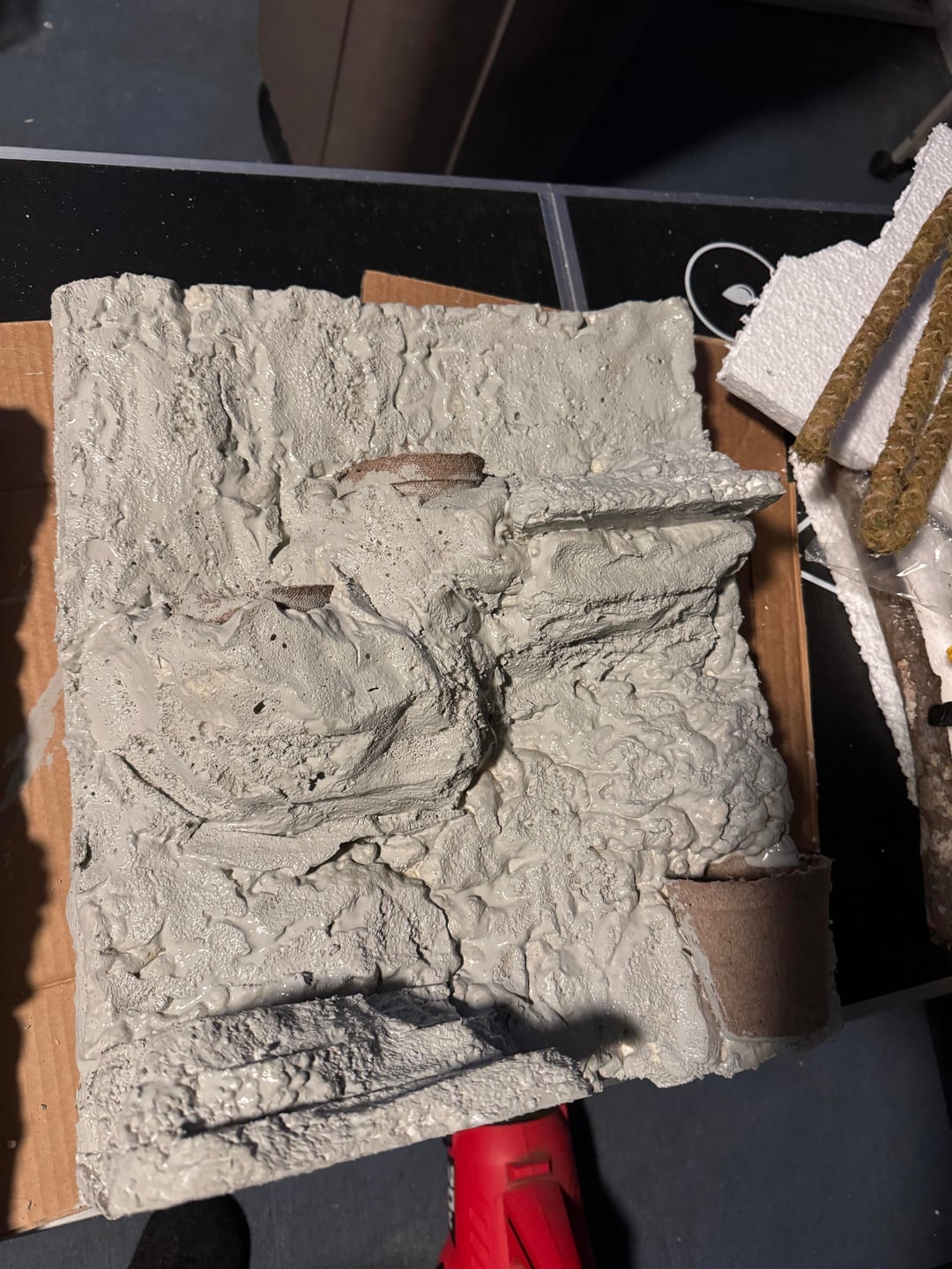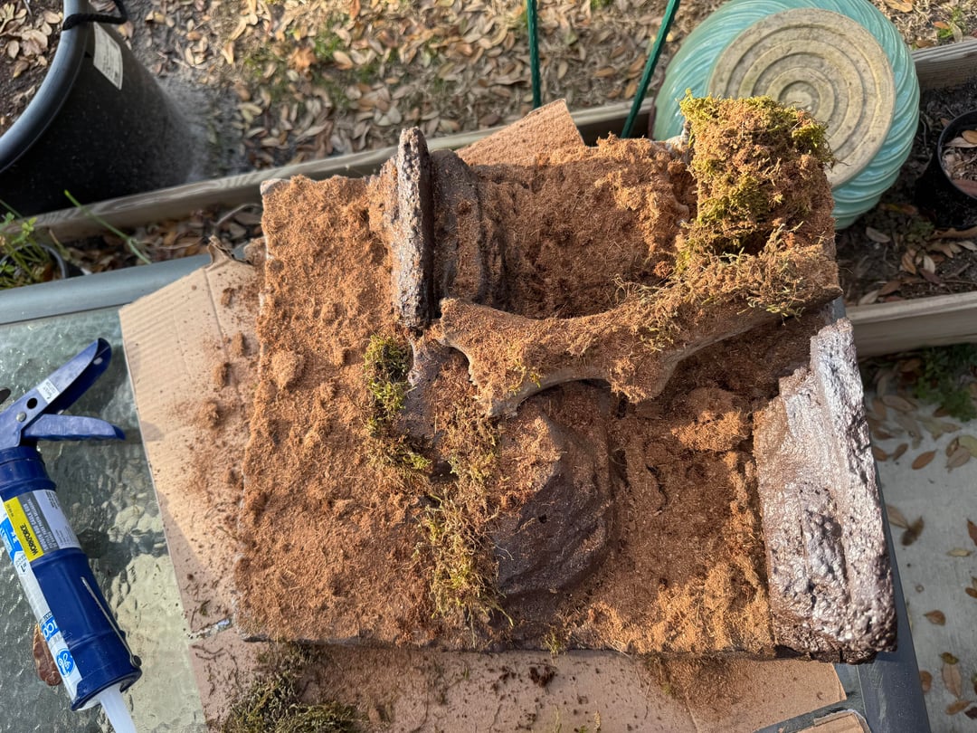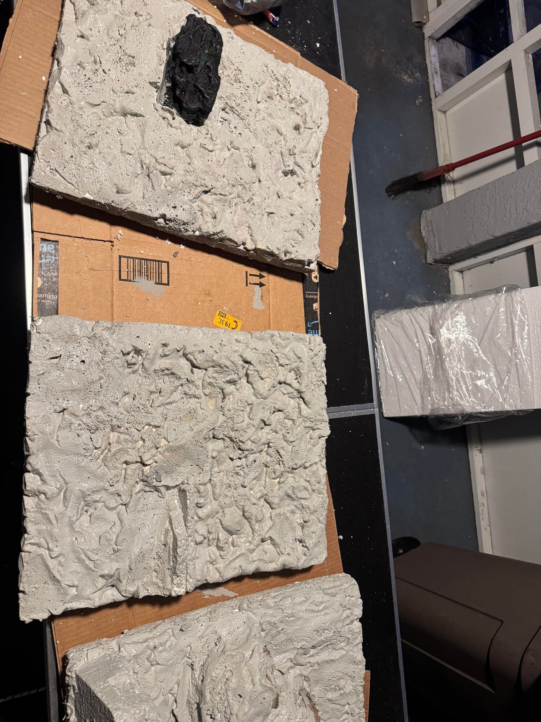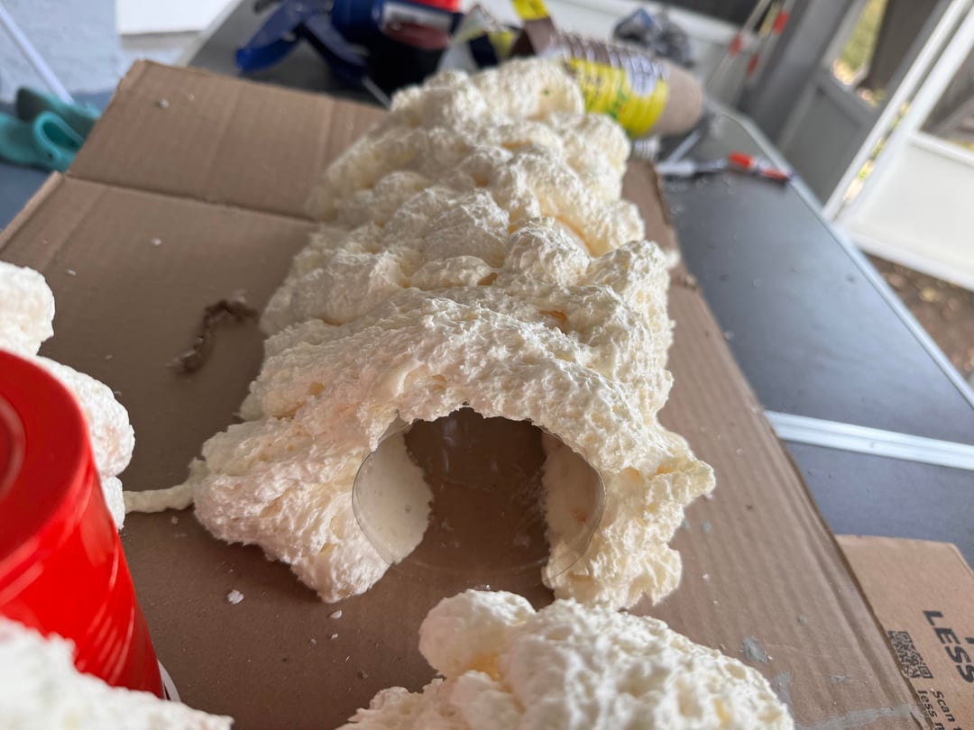 Built it with foam board from Home Depot. I did three sides and attached them with silicone. But I was able to build the panels outside of the tank and get them how I wanted them which was real nice. Used the great stuff original not the pond and I painted everything with drylok and different color paint.