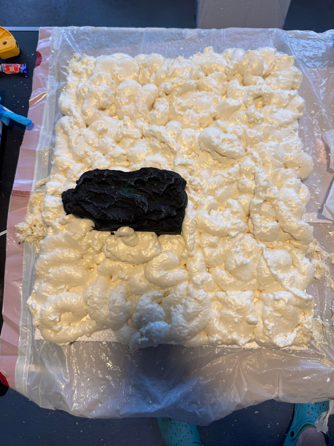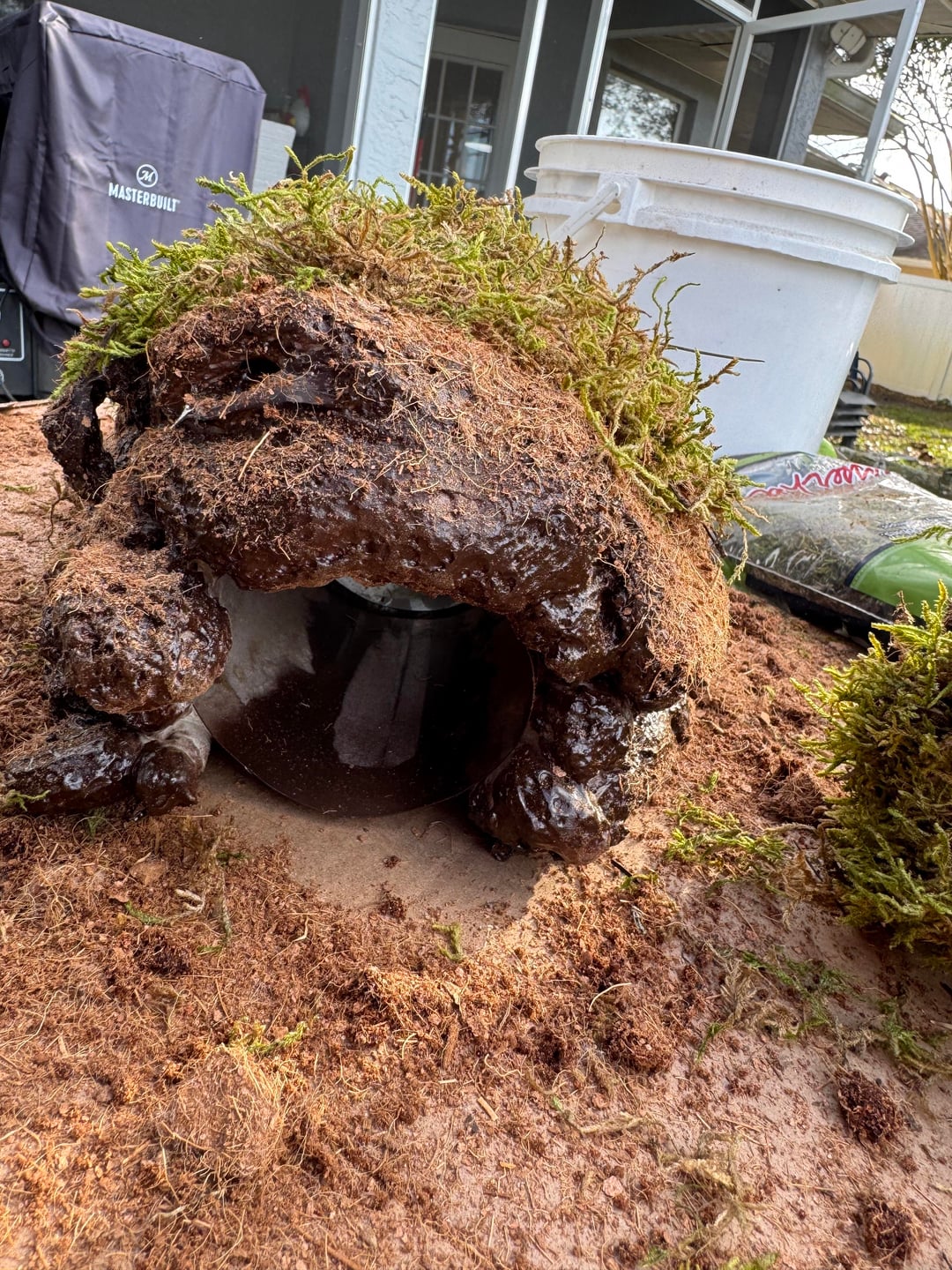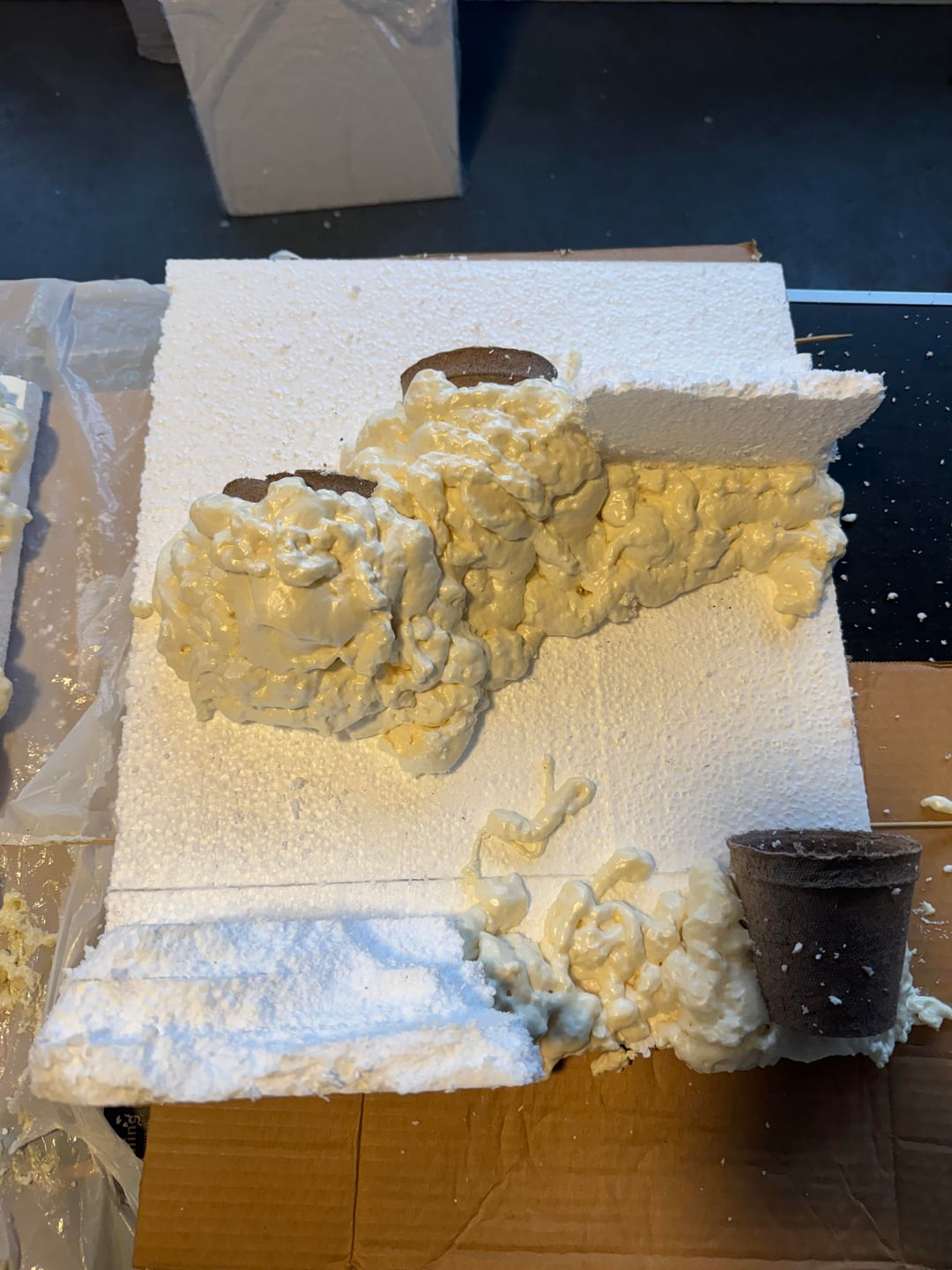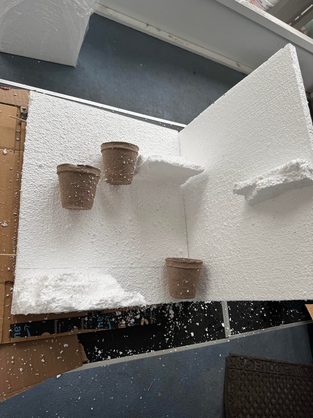 Built it with foam board from Home Depot. I did three sides and attached them with silicone. But I was able to build the panels outside of the tank and get them how I wanted them which was real nice. Used the great stuff original not the pond and I painted everything with drylok and different color paint.