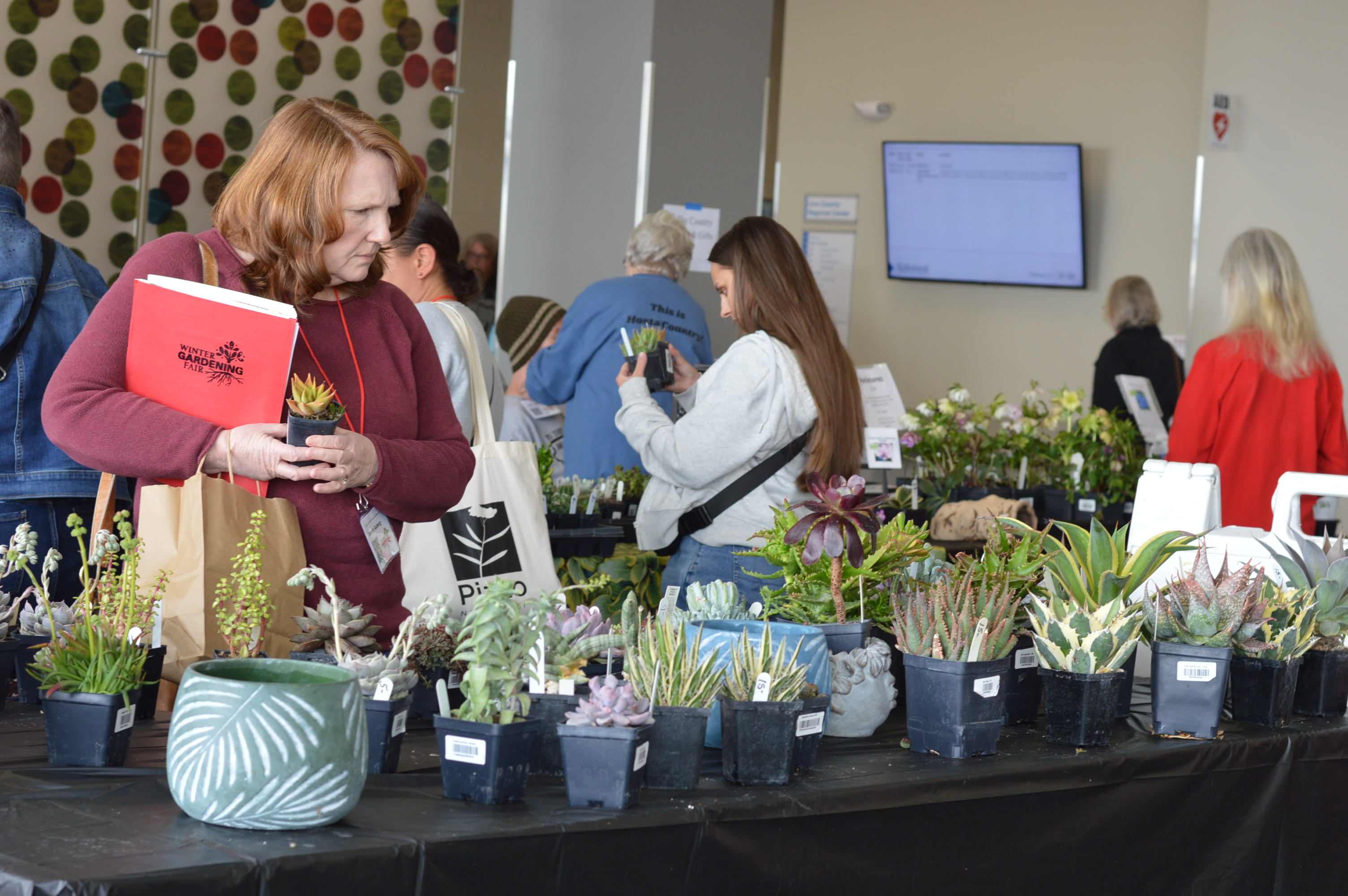 Attendees at the Winter Gardening Fair look at succulents and other plants from In the Country Garden & Gifts, from Independence, Iowa. (photo/Cindy Hadish)