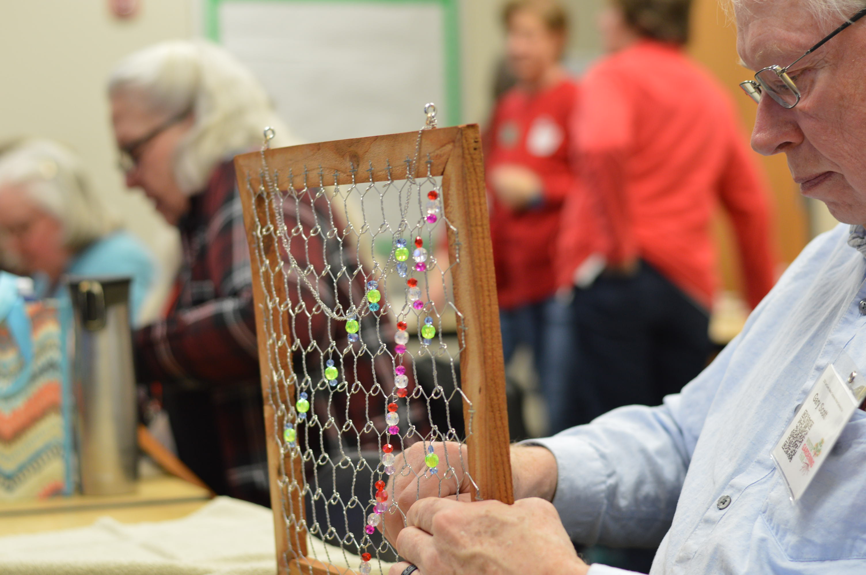 Participants create chicken wire suncatchers during the Winter Gardening Fair. (photo/Cindy Hadish)