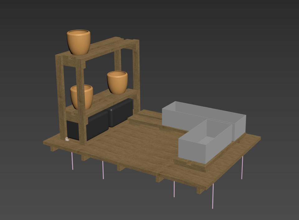 I'm DIYing the base and the interior of a 185cm X 126cm or around 6ft X 4ft greenhouse. I'm using a cad software to help me visualize the design. I bought some heavy duty wood planks and stringers.
