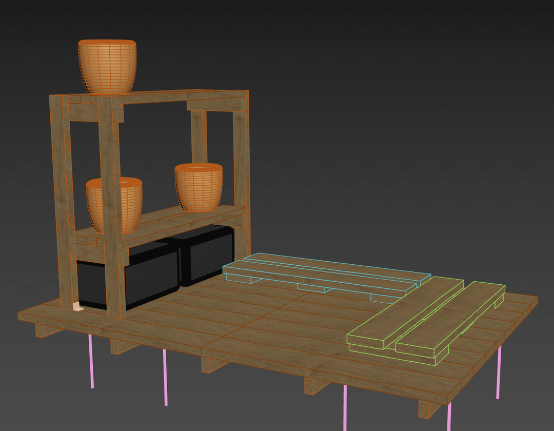 I already created a basic platform fixed to the ground with rebar anchors and added some shelves to the inside.