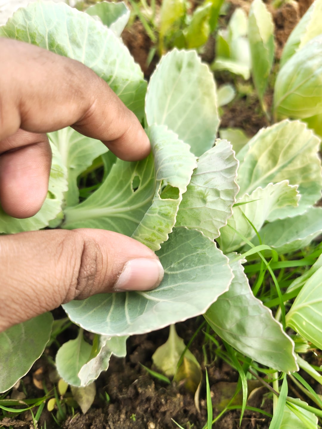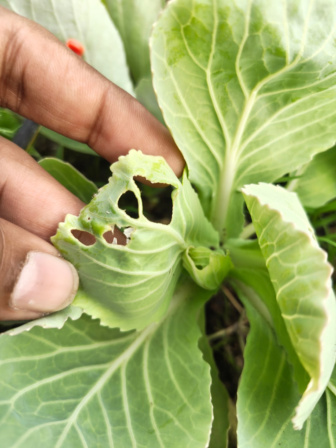 You’ll find a tiny green worm (think like inch worm size) in there somewhere and sometimes hiding under the leaf. I keep a small water cup by my cabbage and pick them off and chuck them into the water.