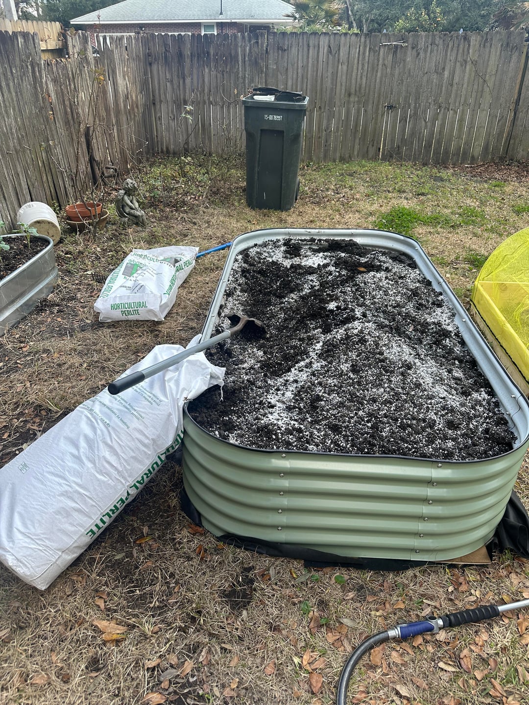 Just filled this raised bed with some veggie mix I bought from my local nursery. According to them it’s equal parts mushroom compost and top soil. I’m seeing really poor drainage so far. This picture was taken after maybe 45 seconds of water from the hose. Any recommendations or amendments i need to make to improve this? I added a huge bag of perlite today but it’s still not draining very well.