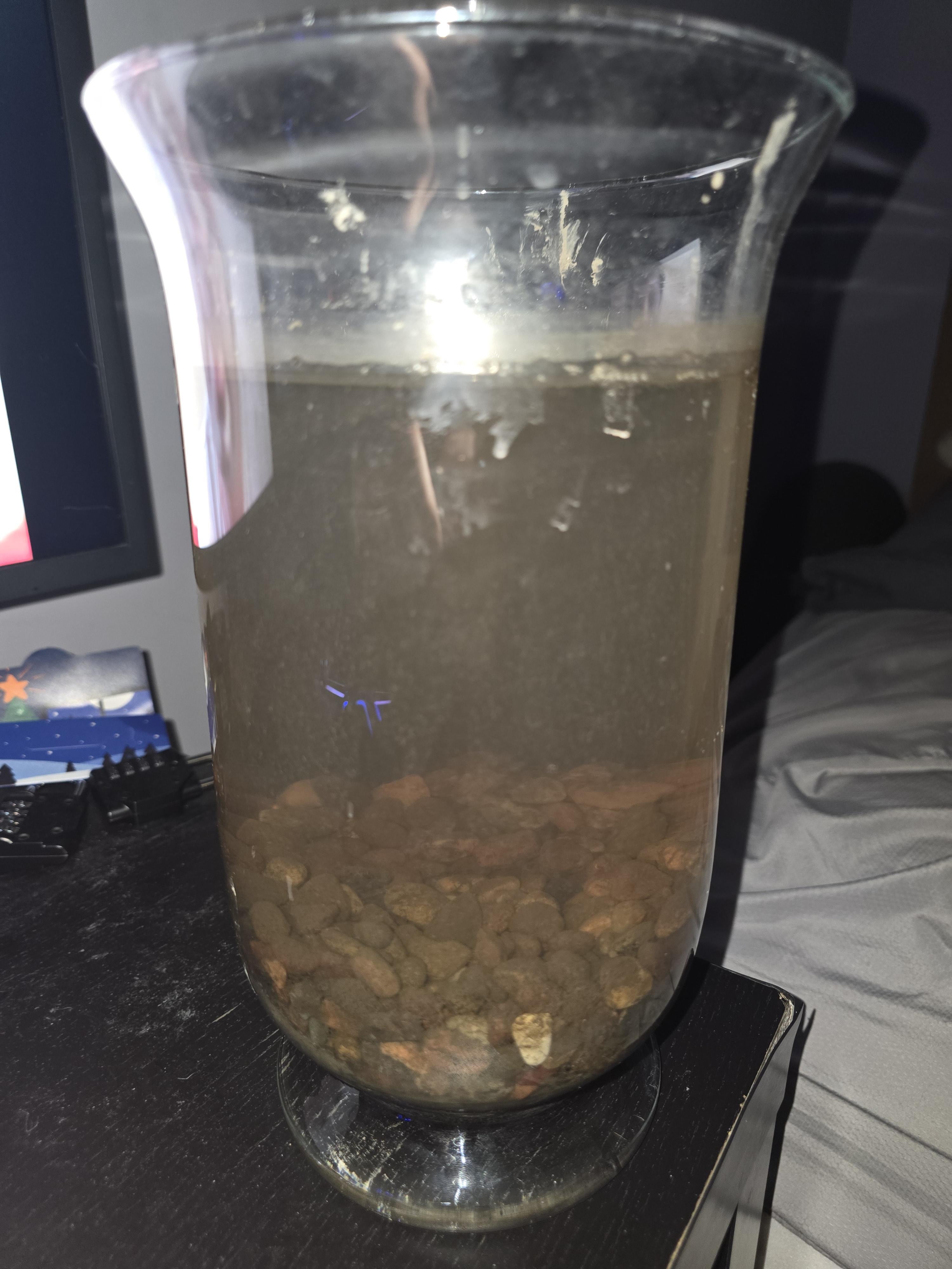 So I'm planning on adding, plants, shrimp and snails to my jar but due to bad timing I was able to retrieve pond water and mud but no plants.