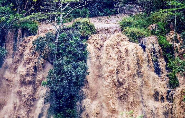 Kaukonahua Stream in Waialua rose dramatically to 29.09 feet from 21.3 feet at 12:40 p.m. Saturday, and a good 10 feet higher than earlier in the week, NWS data shows.