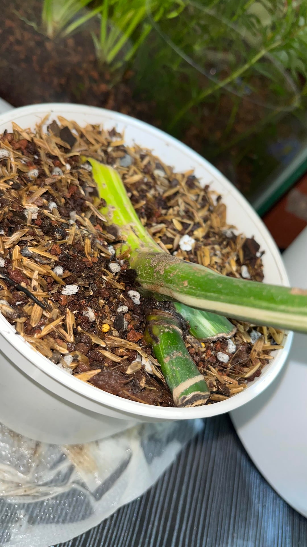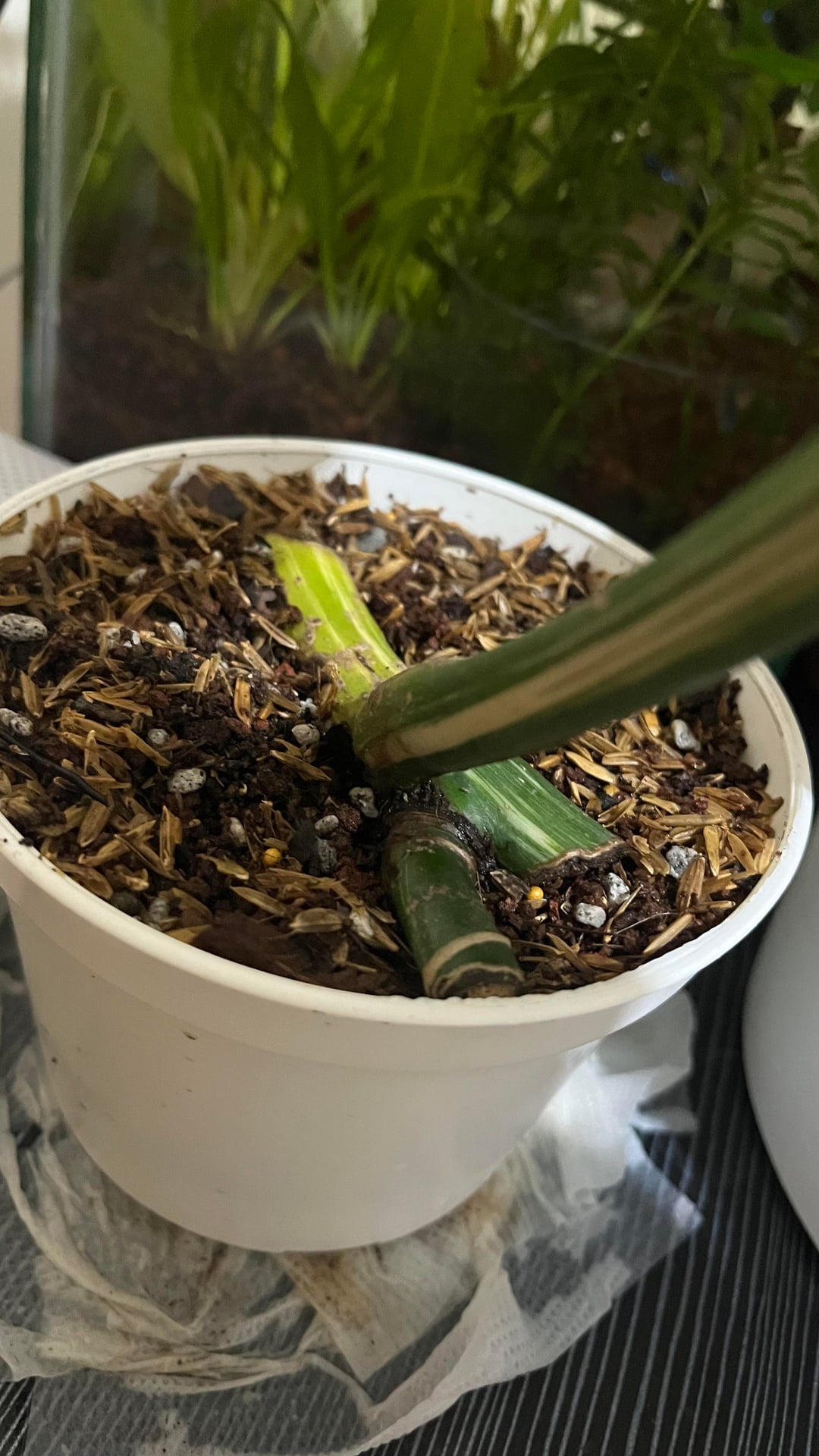 What plant is this and have you already propagated this cutting before? If theres node and roots it should grow but in about few weeks you just need to wait.