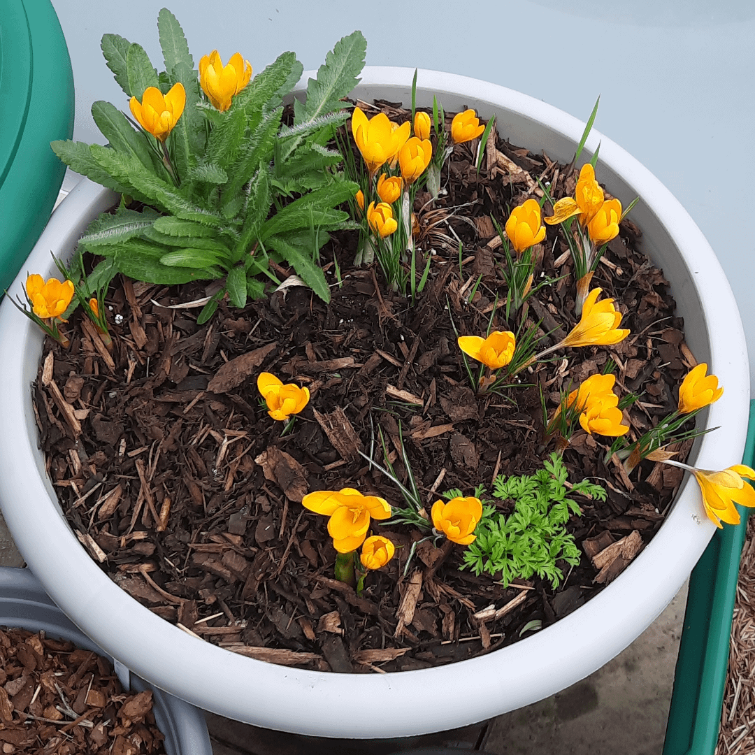 those crocuses are popping off that yellow against the mulch is such a happy little early-spring flex.