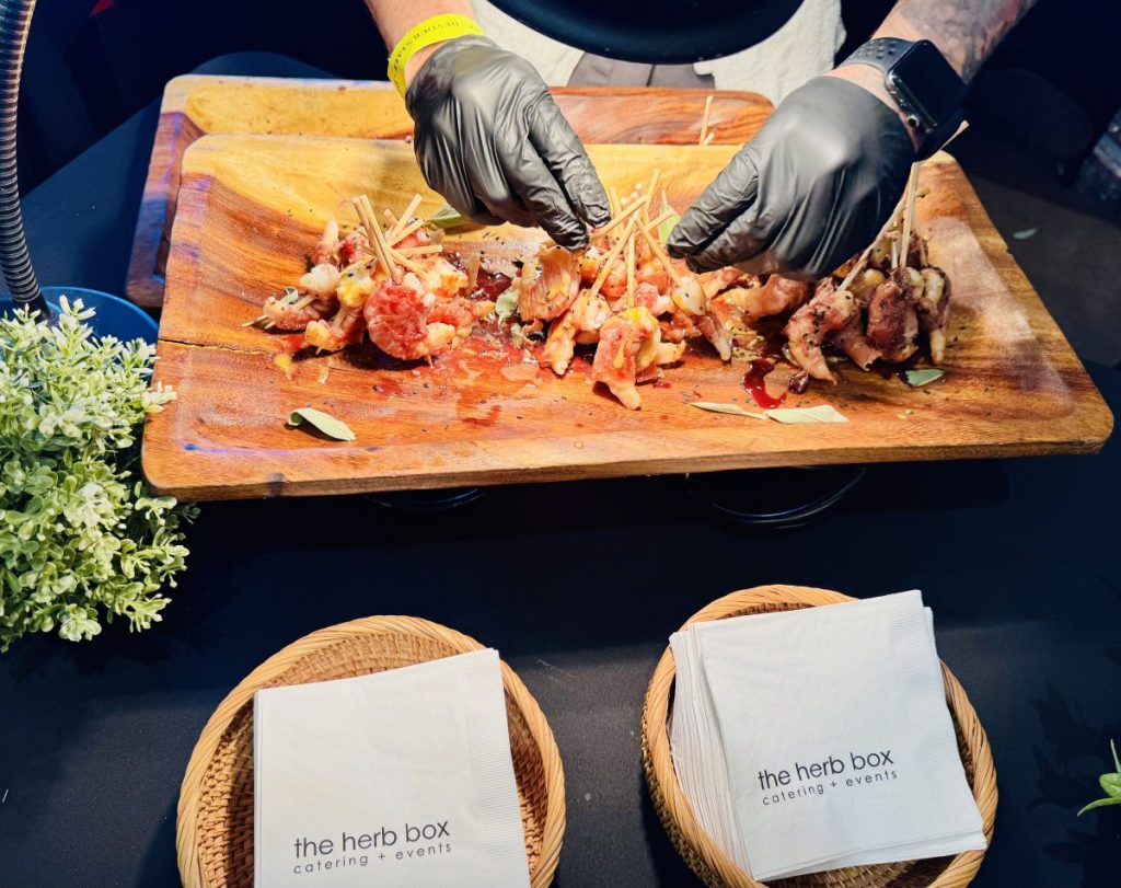 The Herb Box’s prosciutto-wrapped shrimp were served with a blackberry glaze and spicy soy mustard.