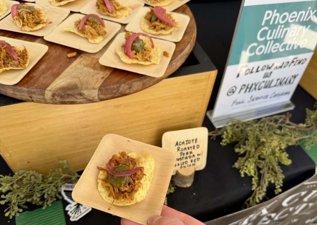 Bite-sized achiote roasted pork tostadas from Phoenix Culinary Collective.