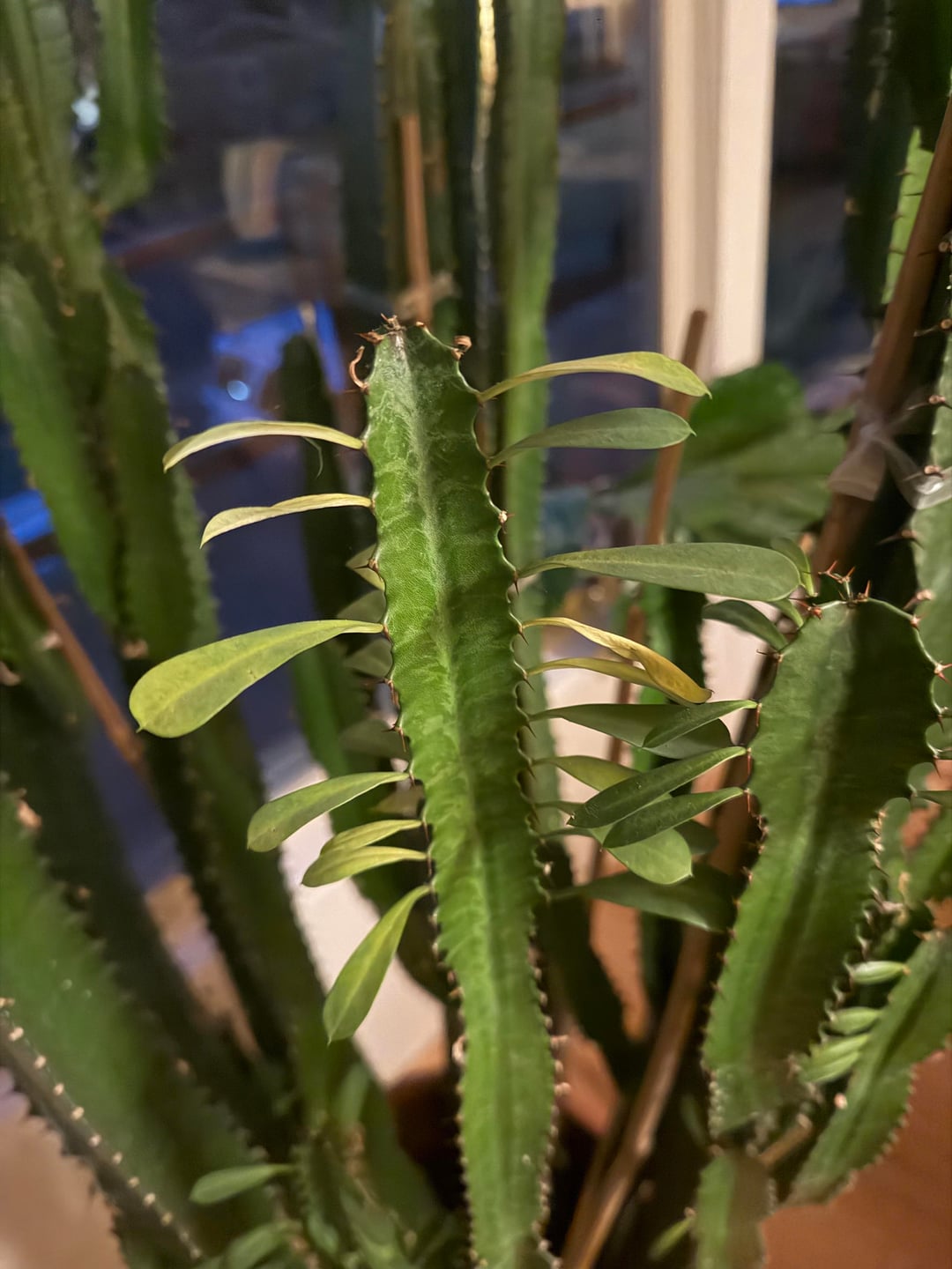 Over the holidays I became the new owner of this huge euphorbia with eight 6 feet tall stalks. It had been at a well maintained nursery for years.