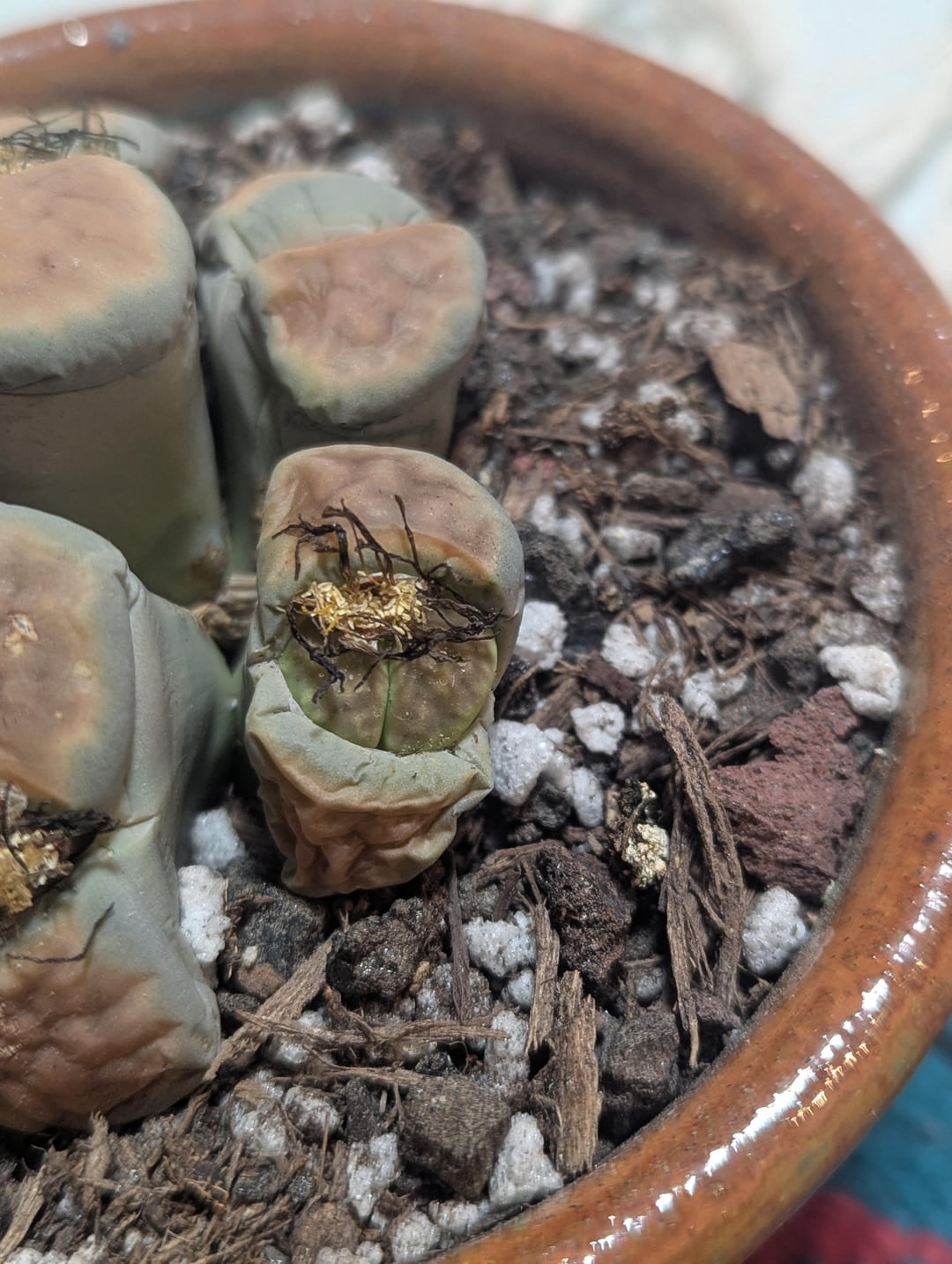 Do nothing until the outer leaves are drier? by thelastplaceon_earth lithops 1 Comment MrToejams 6 days ago Yes, the outer leaves are still plump and the head will use the moisture to keep chugging. Id wait till the new heads have came out, dried, and the new faces start to wrinkle.