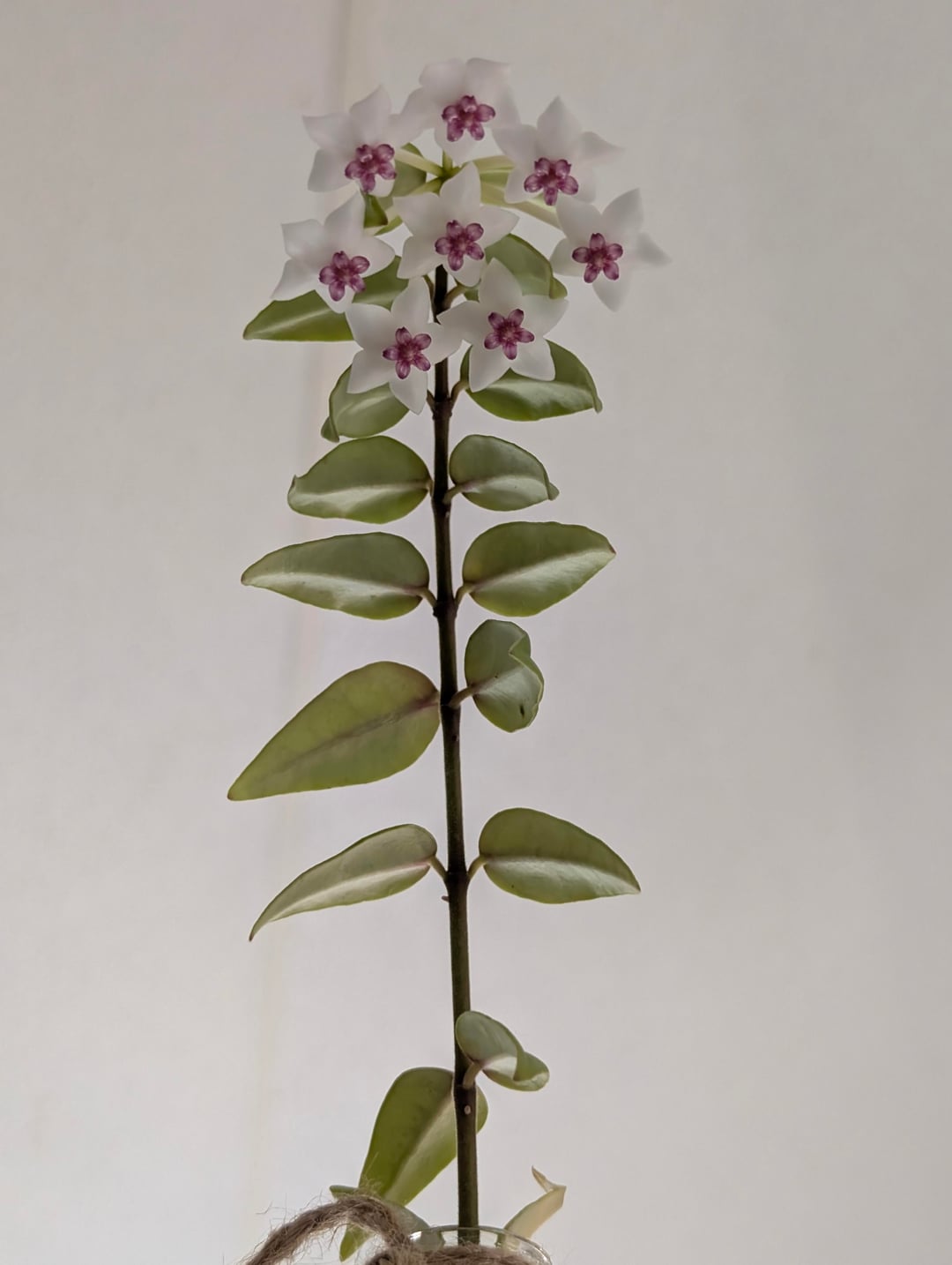 this is my Hoya Bella that I got a few weeks ago as an unrooted cutting. I put it in a little capsule like glass tube to root. I was going to pot it after I saw enough roots but then I noticed this tiny peduncle. I have waited until it bloomed.