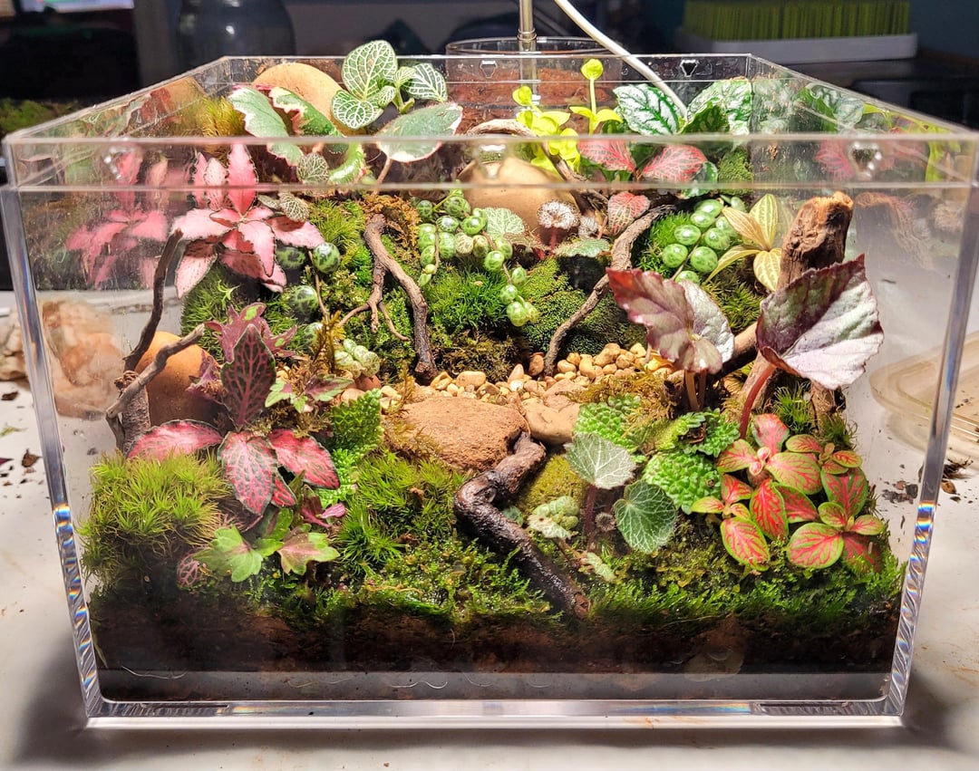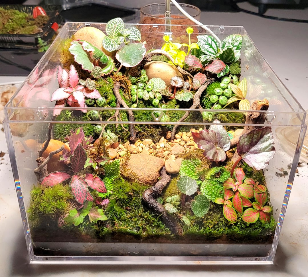 I read all your suggestions on how to finish my cutting terrarium and here is the final result!