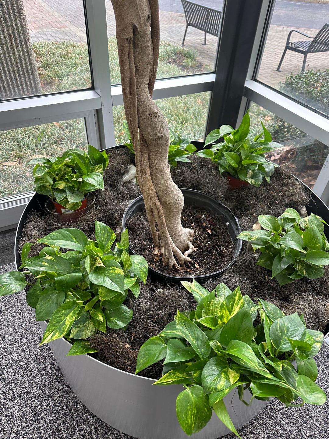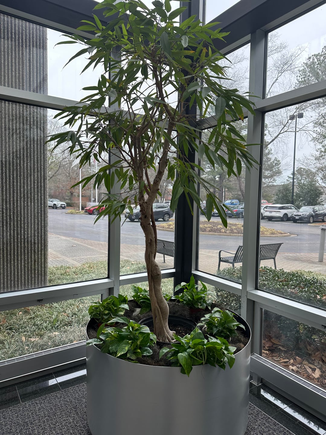 Got these indoor plants. Large aluminum cylinder( volume is 41,600 cubic inches) with a potted tree and some smaller potted plants. Currently it is just filled with foam to take up volume. Thinking about emptying it, sealing the interior with some black pool liner I have and then filling the entire thing with soil and replanting the current tree and smaller plants.