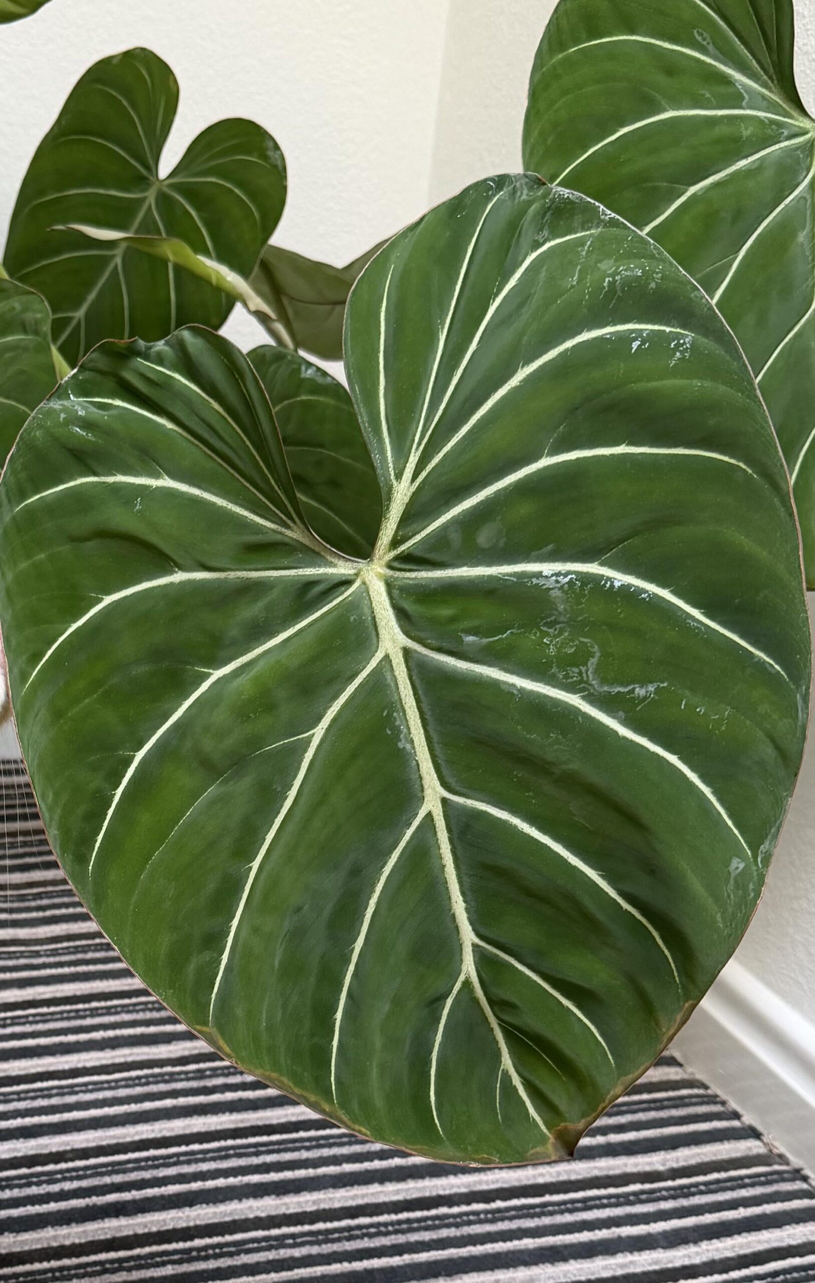 Hello! I picked up this gloriosum from facebook market place a few days ago, it has big lush leaves but has reached the end of its pot. A few of its leaves have this browning round the edges, and it seems to be getting worse, I have not watered it since I got it I have just left it to acclimatise. Is this a sign of root rot? Or is it just the stress of moving? Apologies this is the first philodendron I've owned so not learned how they work yet! Thank you!