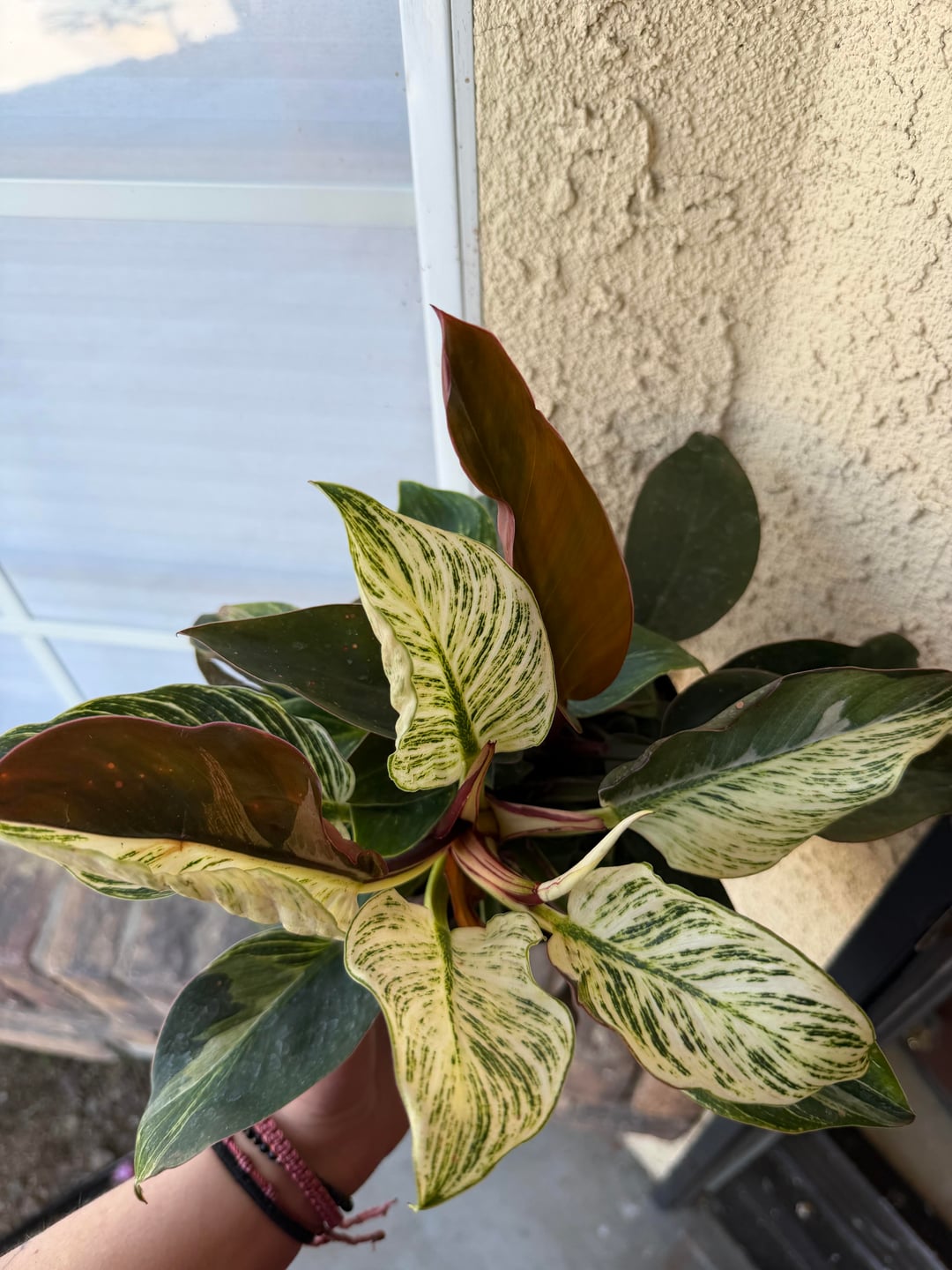 Birkins are a mutation of red congo philodendron, this one is just showing signs of reverting back.