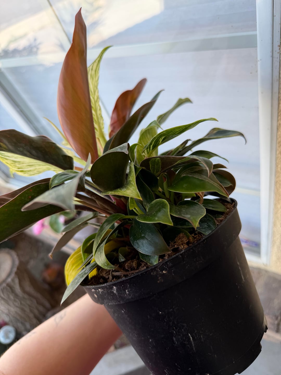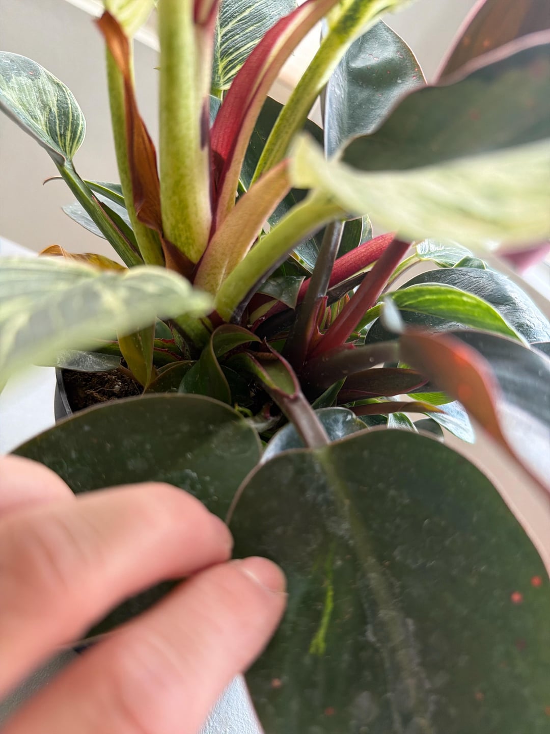 Do I repot and separate what I can? Or just let it grow super full and bushy and maybe take some babies out? It looks like the pink one is it's own plant also and I'm wondering if these halfmoon leaves make it more special? It's so pretty 😍