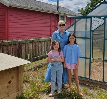 Piopio Primary principal, Sue Coyle, with students Willow and Rosie Barnsdall