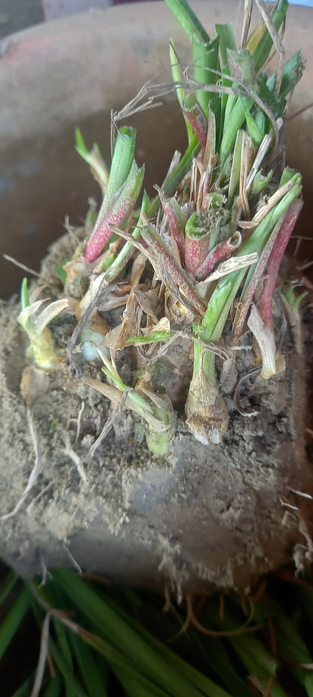 It looks like tuberose fs. They usually don’t produce flowers unless they are fertilized. Another factor is heat, if it’s not warm enough it won’t produce buds. They also need well draining but moisture retaining soil because during the growing season, they need consistently moist soil.