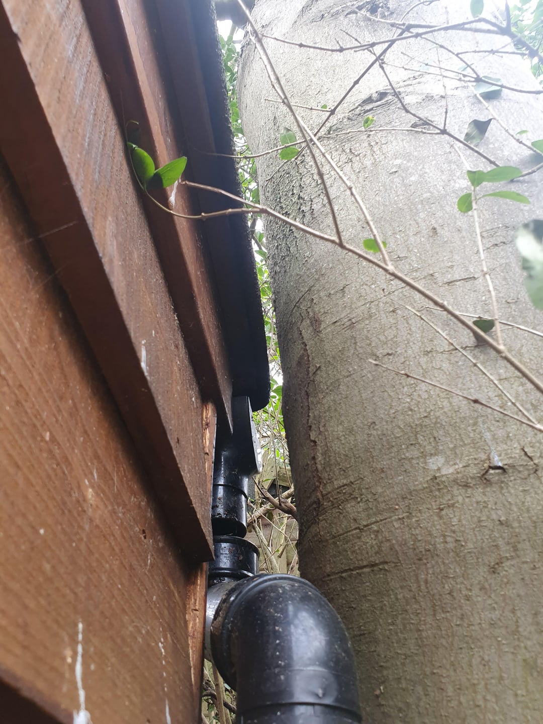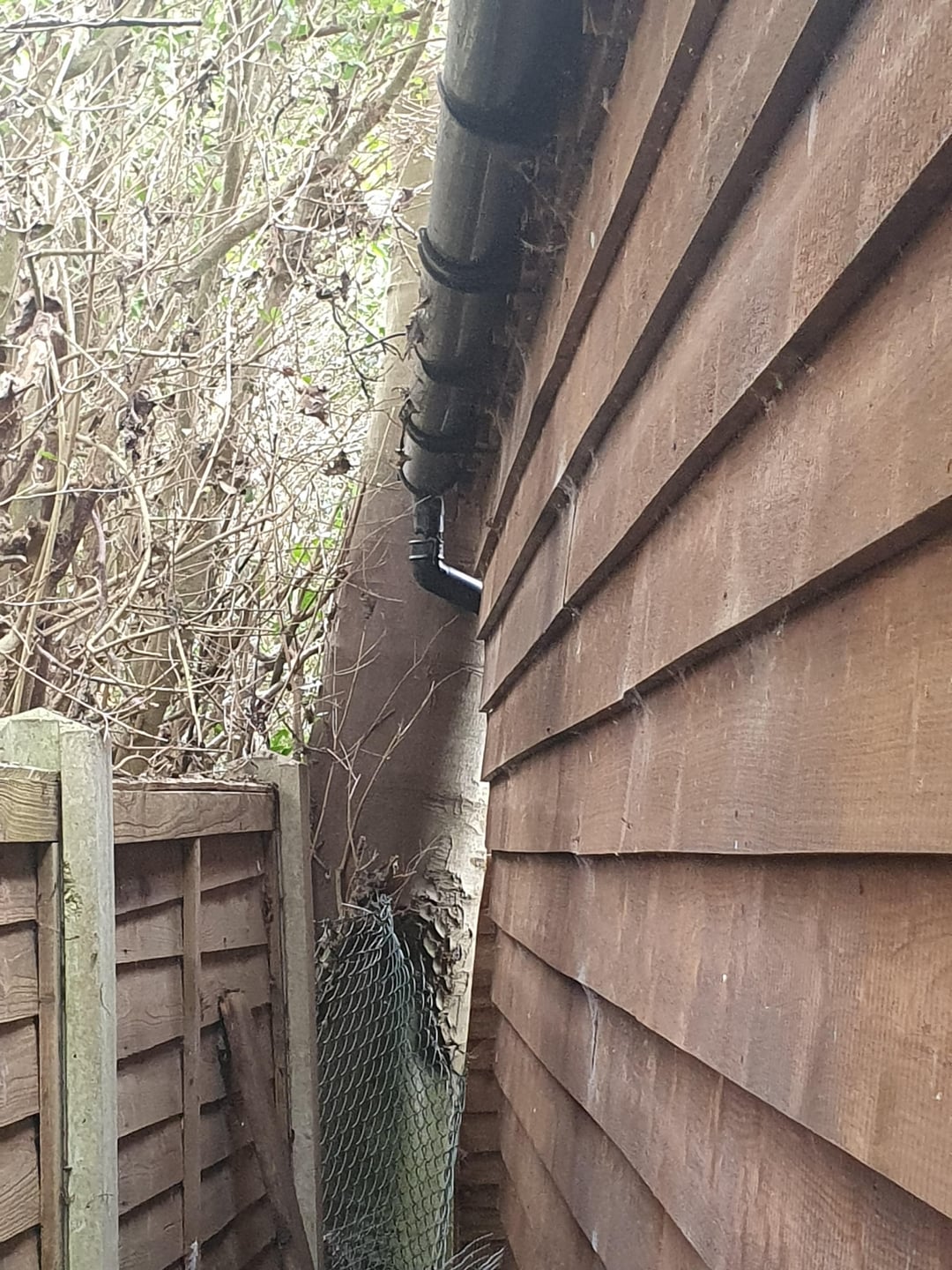 This tree has always been pushing through the boundary since we've been here. When the summerhouse was built, I dont remember exactly how close the roof was to the tree, they definitely built it closer than I would have liked, but unfortunately I never measured it.