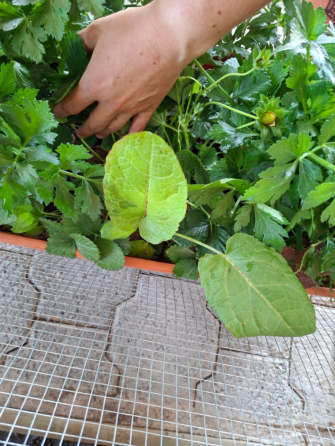 Sorrel…it reminds me of sorrel…Rumex acetosa…if it is another Rumex than cook it decently, blanch it.