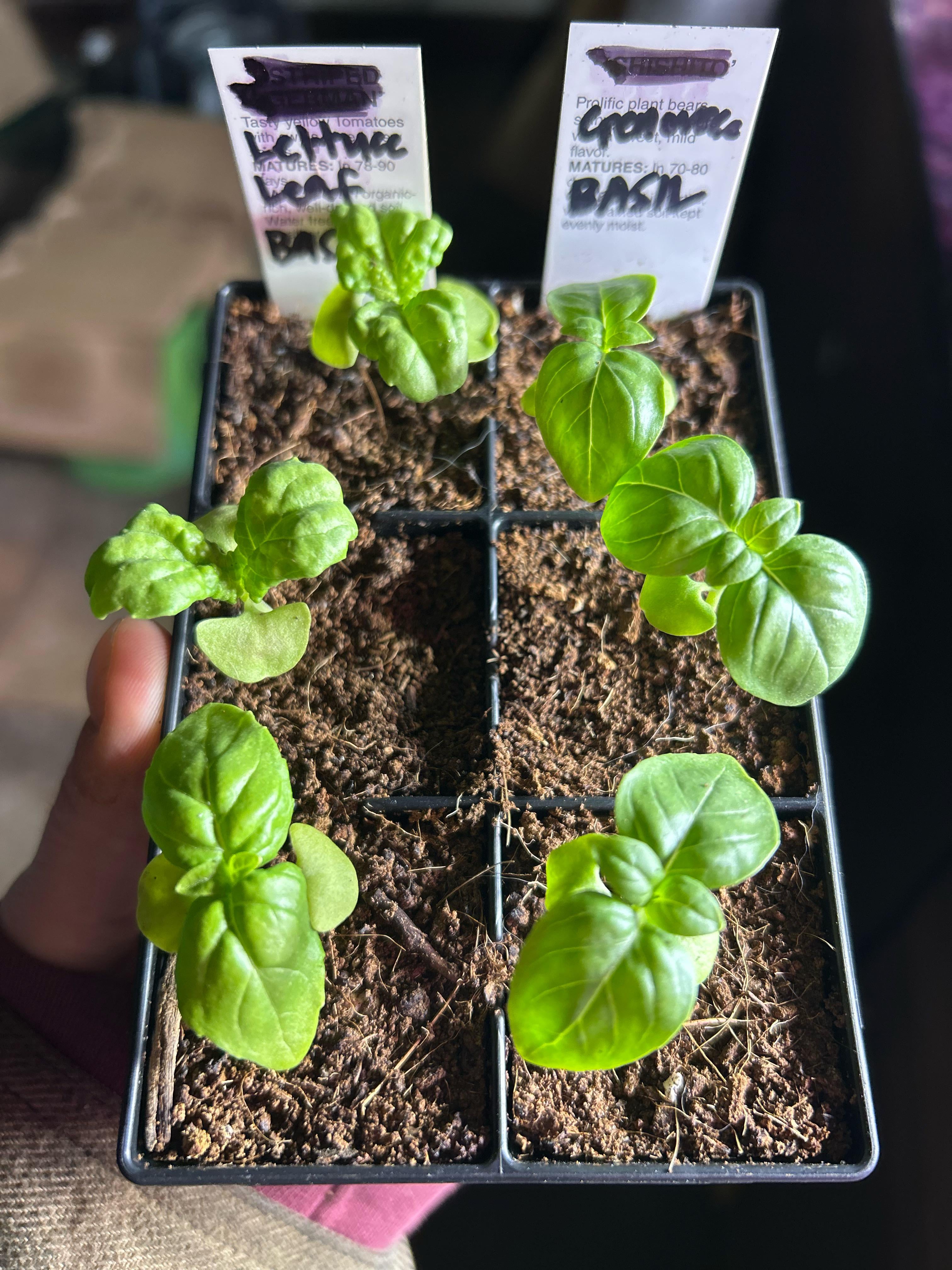 Apologies! I had intended to plant 3 lettuce leaf basils and ended up with 2 and 4 genovese basils. Just a silly mix up I wanted to share π€ͺ
