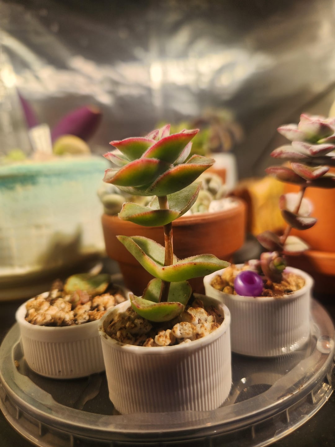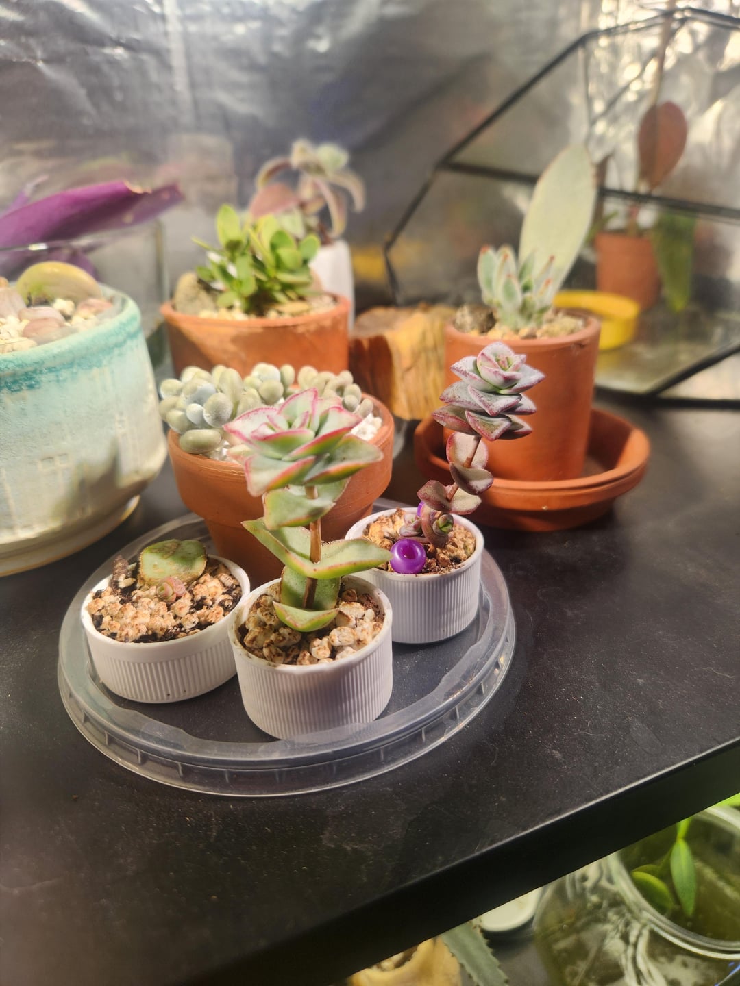 Hello growers, I have these beauties that grew from cuttings. Do you think I should cut so only the more compact new growth is displayed? Or let the plant grow with the etoliated portion still present? This is mostly an esthetic choice but I'm wondering if anyone who has made this choice before, or just has an opinion, would like to weigh in. I am very proud of the sun stress and furan.