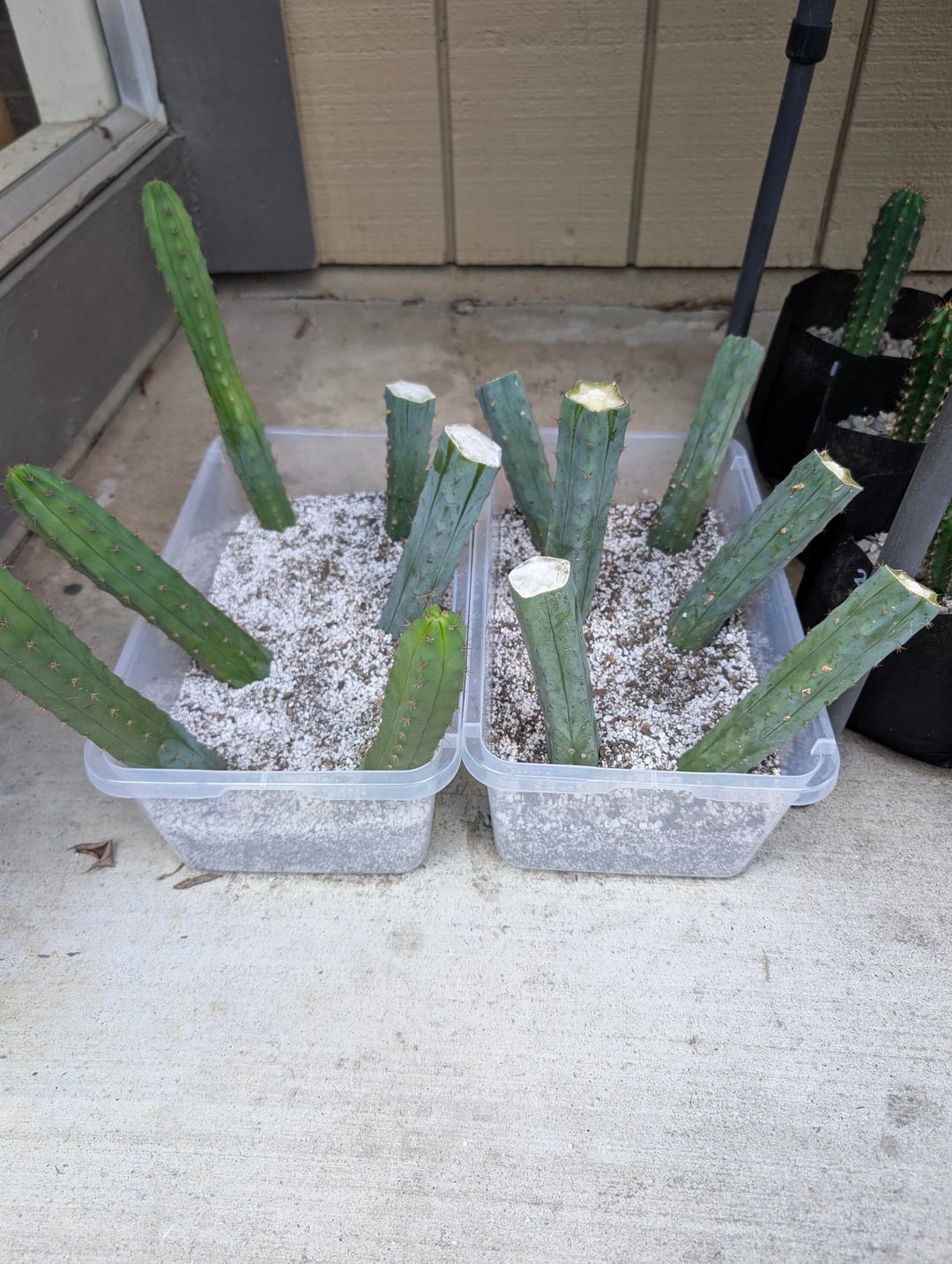 They were already pupping pretty hard, and the weight started making them tip over — so I cut them back and started rooting the cuts.