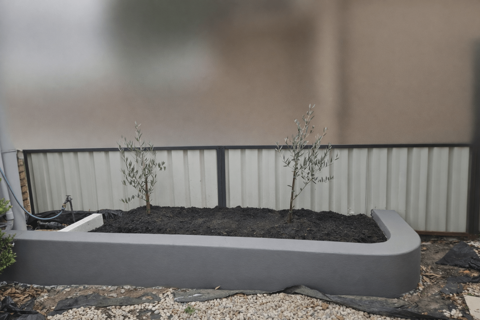 Recently built this garden bed and put in 2 kalamata olive trees (I have since staked them).