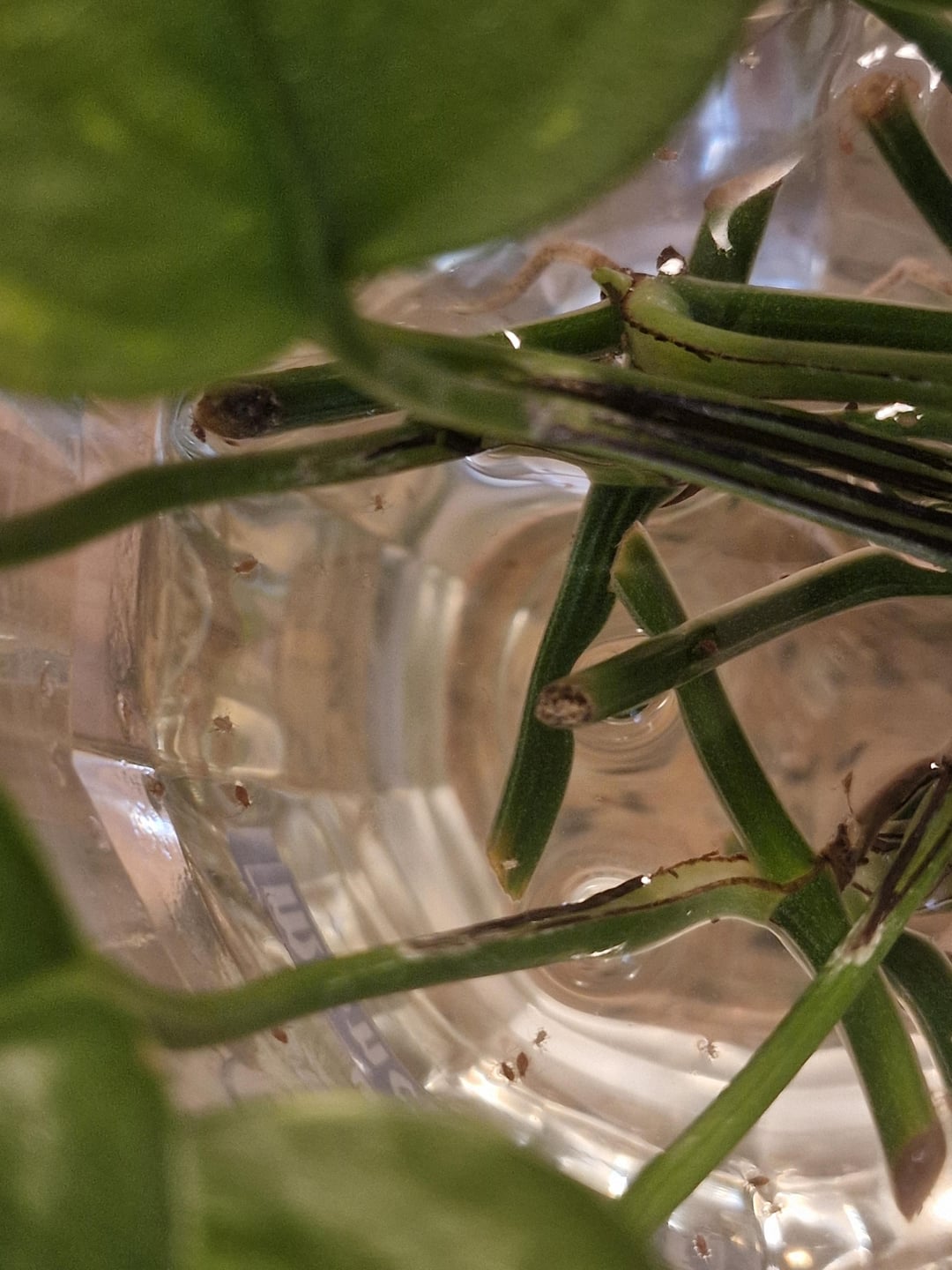im really sorry for the bad quality, its hard to get a picture of them since theyre so small. these cuttings have been propagating for a month and my heart kinda dropped when i checked on them today and saw these bugs everywhere in the water. I think theyre all dead, at least the ones I could see.